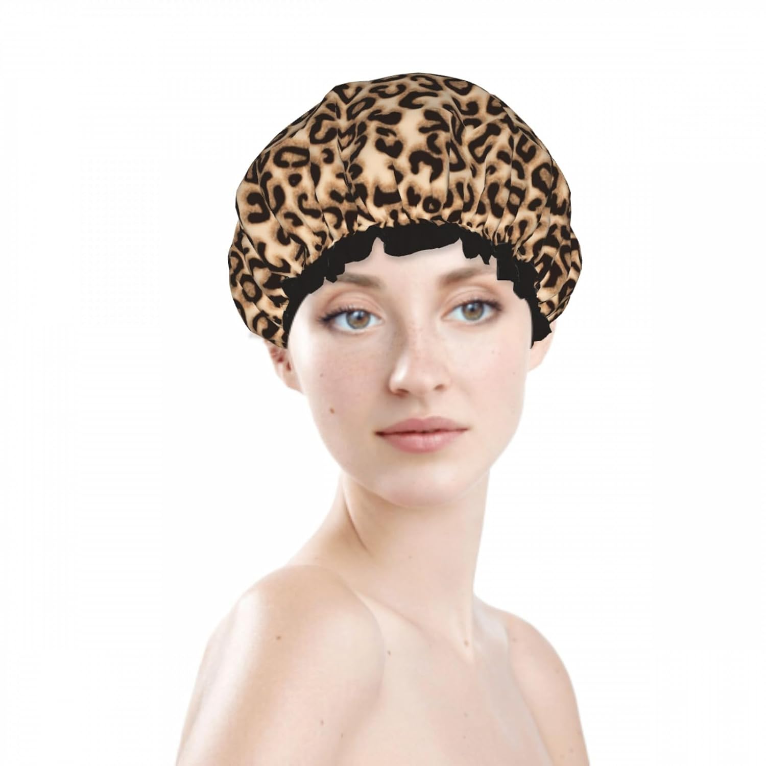 - Opulent Elegance :The leopard double-layer waterproof shower cap is made of lightweight and soft waterproof polyester outer layer and PEVA inner layer, the outer layer with fashionable embossing, it will add stylish style to your bathroom time.