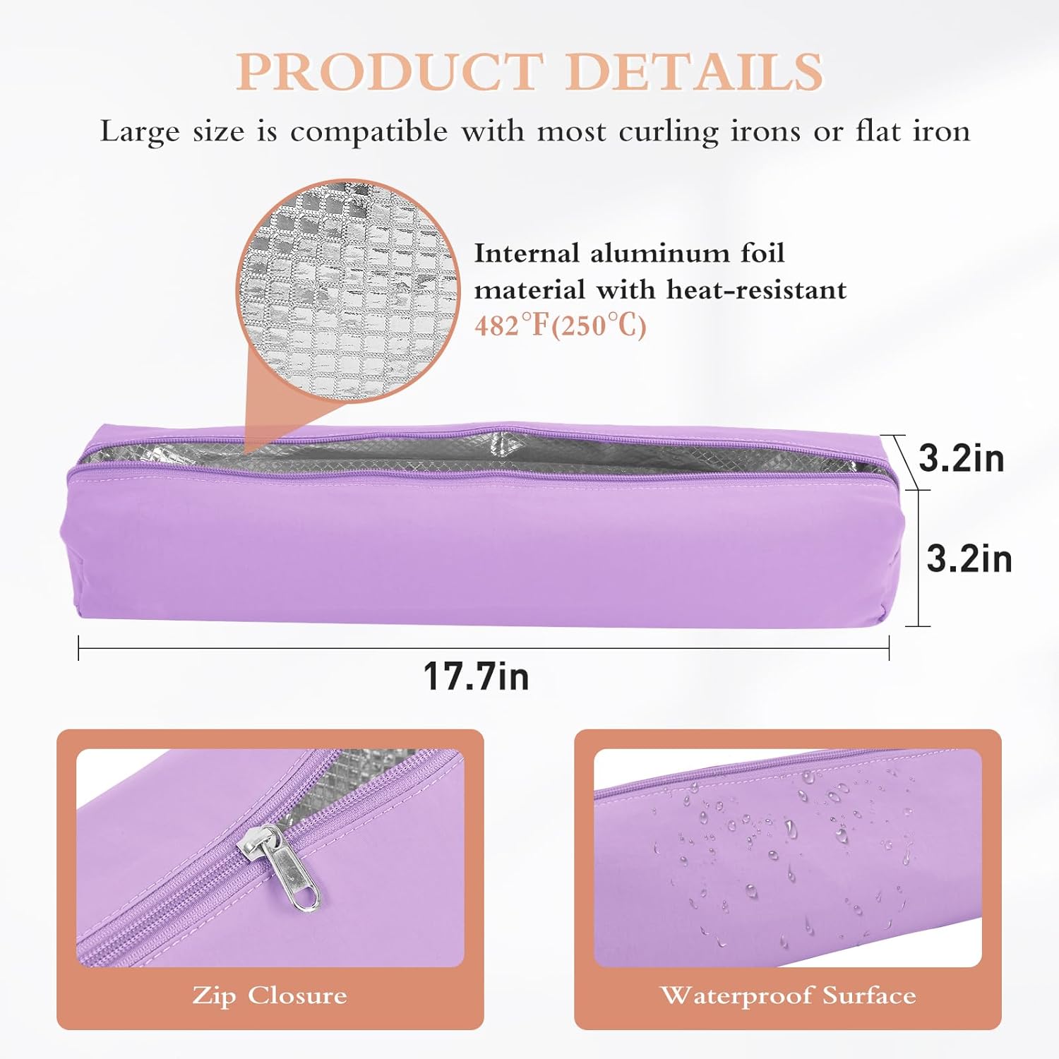 • EXCELLENT DESIGN: This curling iron holder bag is designed with 17.7 x 3.2 x 3.2 inches, and can accommodate most hair styling tools; It weighs 0.18 lb only and will not place an extra burden when you travel; The inner lining of our flat iron travel case is made of special aluminum foil material which can be cleaned by gently wiping it with a cleaning cloth