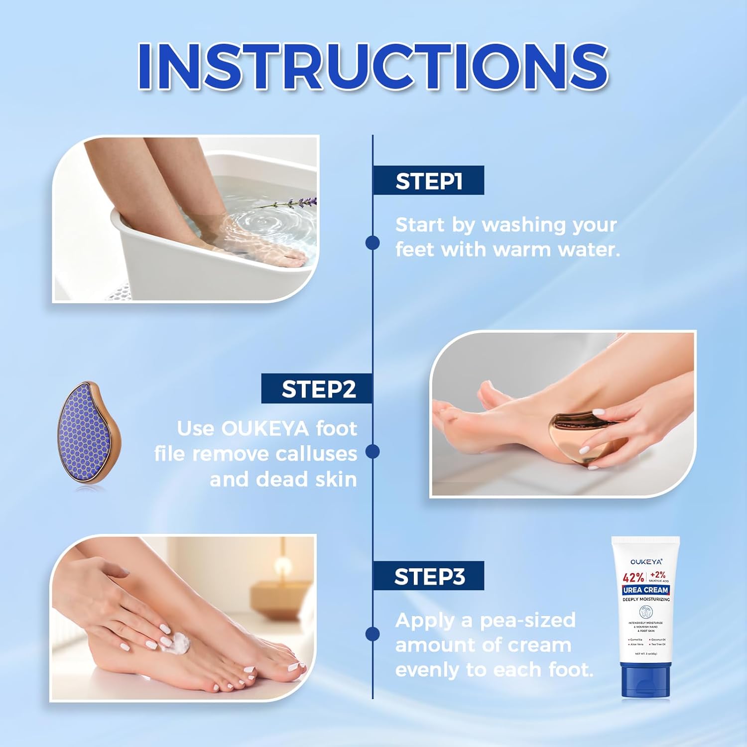 OUKEYA Urea Cream 42 Percent with 2% Salicylic Acid Tube, Urea Cream 40 Percent For Feet Maximum Strength, with Foot Callus Remover, Nano Glass Foot File