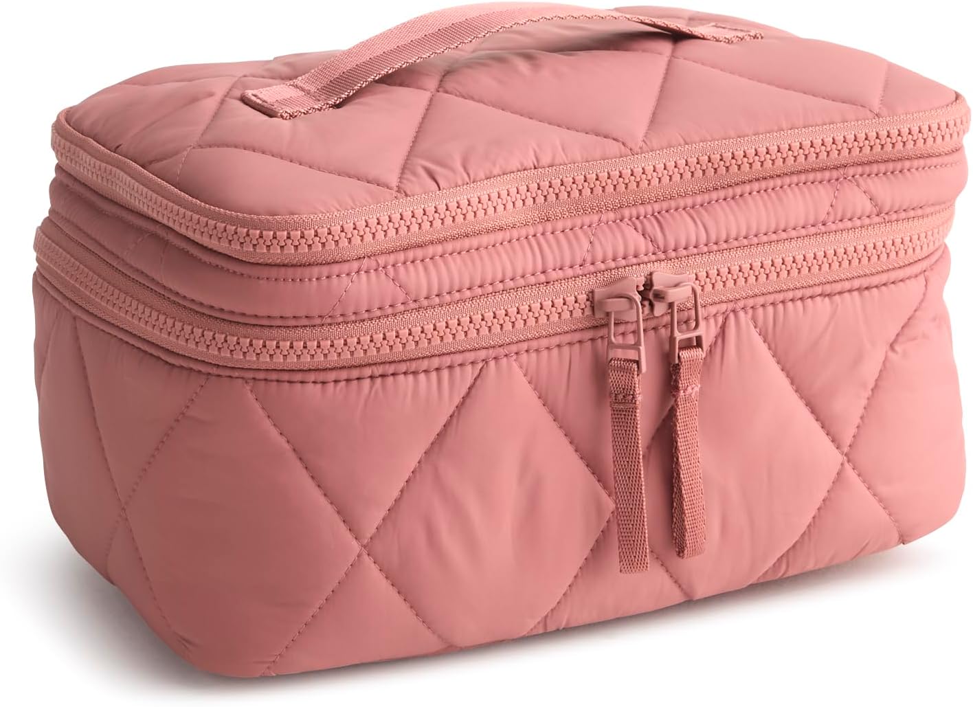 - DETAILS - Interior features two zip pockets, two slip pockets, and eight elastic makeup brush loops with a wipeable TPU cover