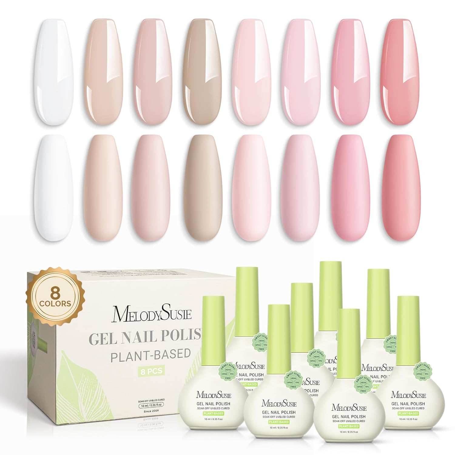 MelodySusie Plant Based Gel Nail Polish Set,Pink and Nude Versatile Colors,Hema Free,Soak Off UV LED Gel Polish Nail Art Manicure Salon DIY at Home 8Pcs 10ml/0.34 fl oz