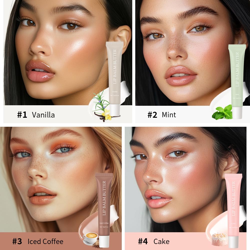 Summer Lip Glossy Butter Lip Balm, Lip Gloss Set, Soothing Lip Skincare, Instant Moisture, Lightweight, Nourish, Hydrate, Moisturizing Tint, Non-Sticky, Long-lasting (4Colors, Large)