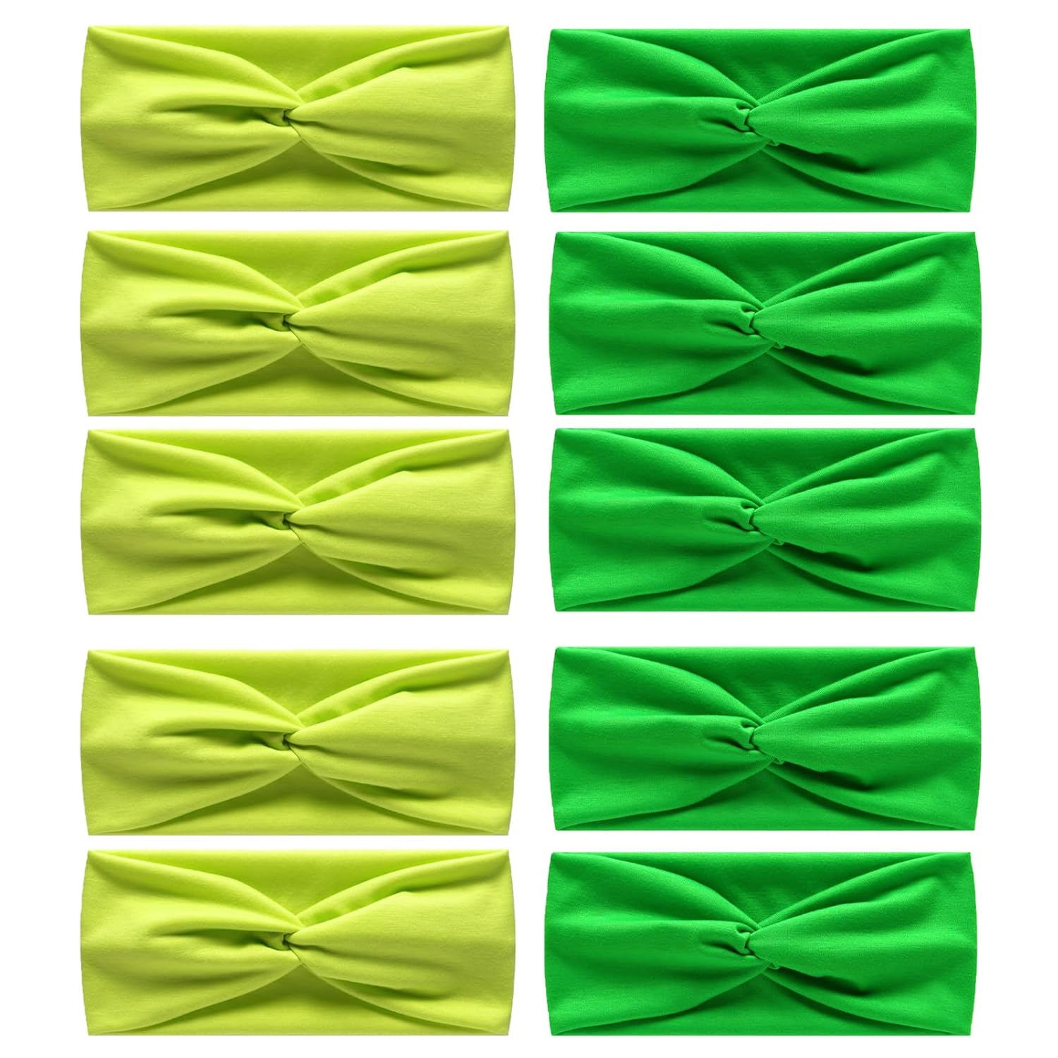 10 Pcs Wide Absorbent Sport Headbands for Women, Non-slip, Stretchy, Soft Cotton Twist Knotted Hair Bands for Daily Workout Yoga Running Sports, Green