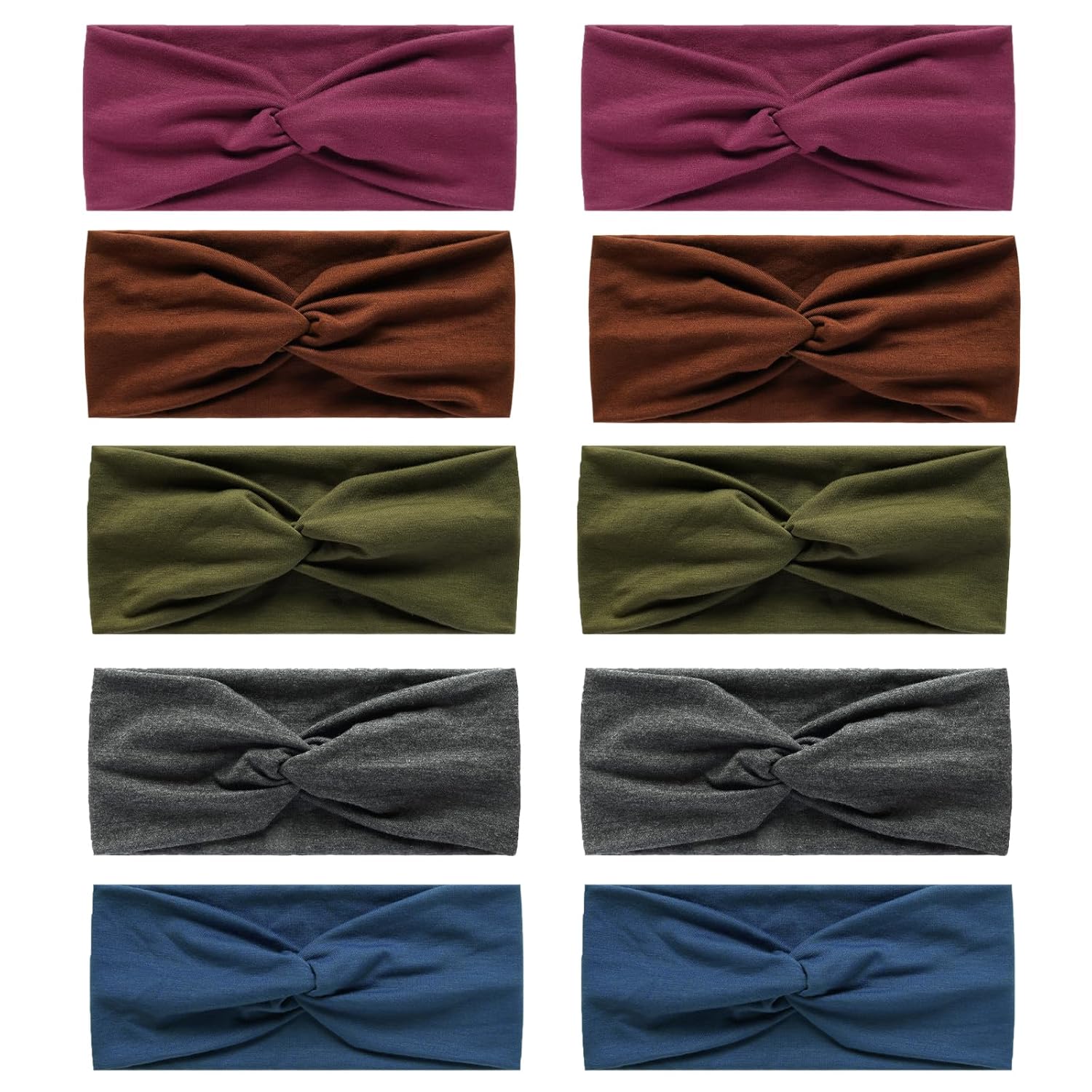 10 Pcs Wide Absorbent Sport Headbands for Women, Non-slip, Stretchy, Soft Cotton Twist Knotted Hair Bands for Daily Workout Yoga Running Sports, BC