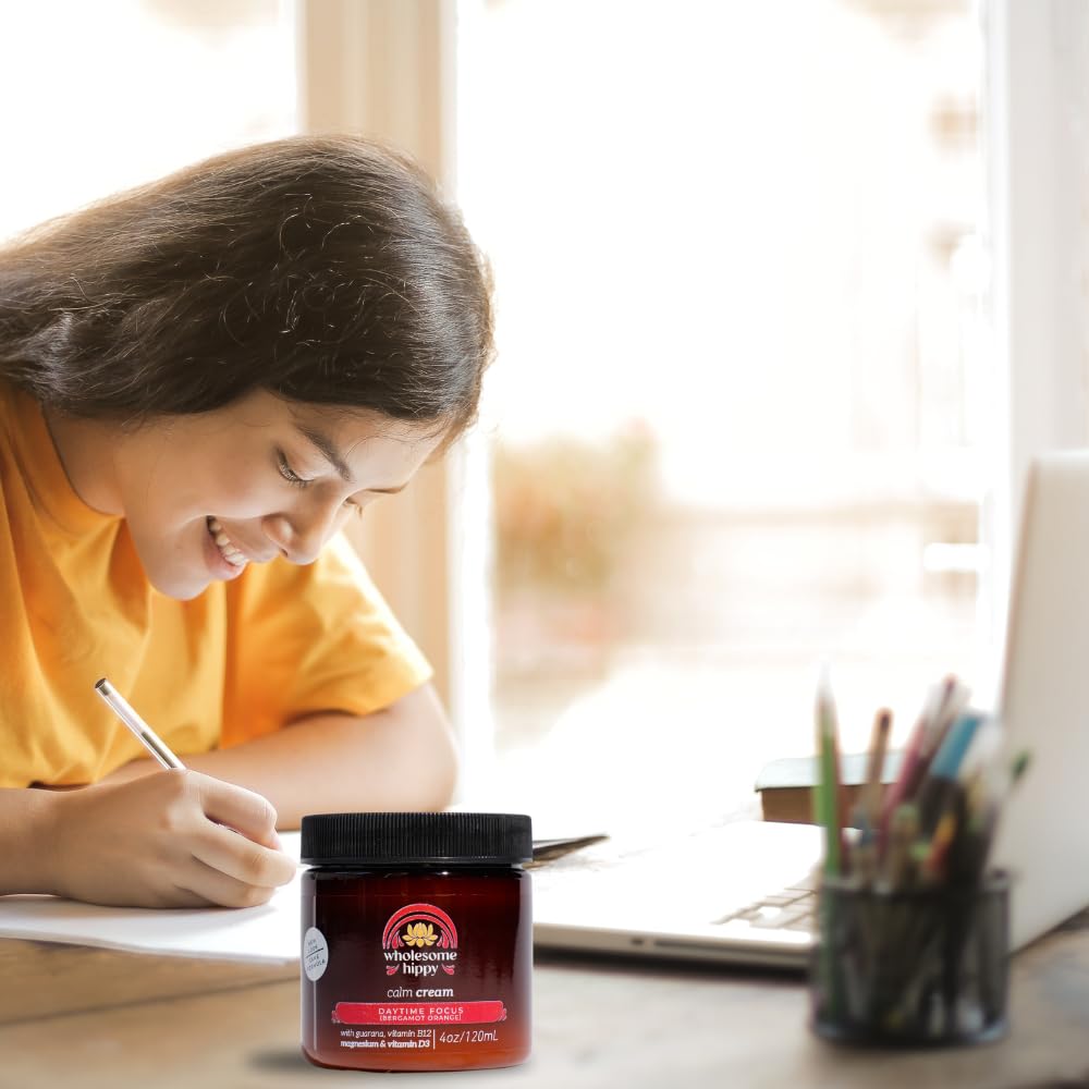 - Wholesome Hippy Daytime Focus Calm Cream – Energizing Body Butter with Magnesium, Vitamin B12, Guarana & Bergamot Orange – Moisturizing Wellness Cream for Daily Clarity – 4oz
