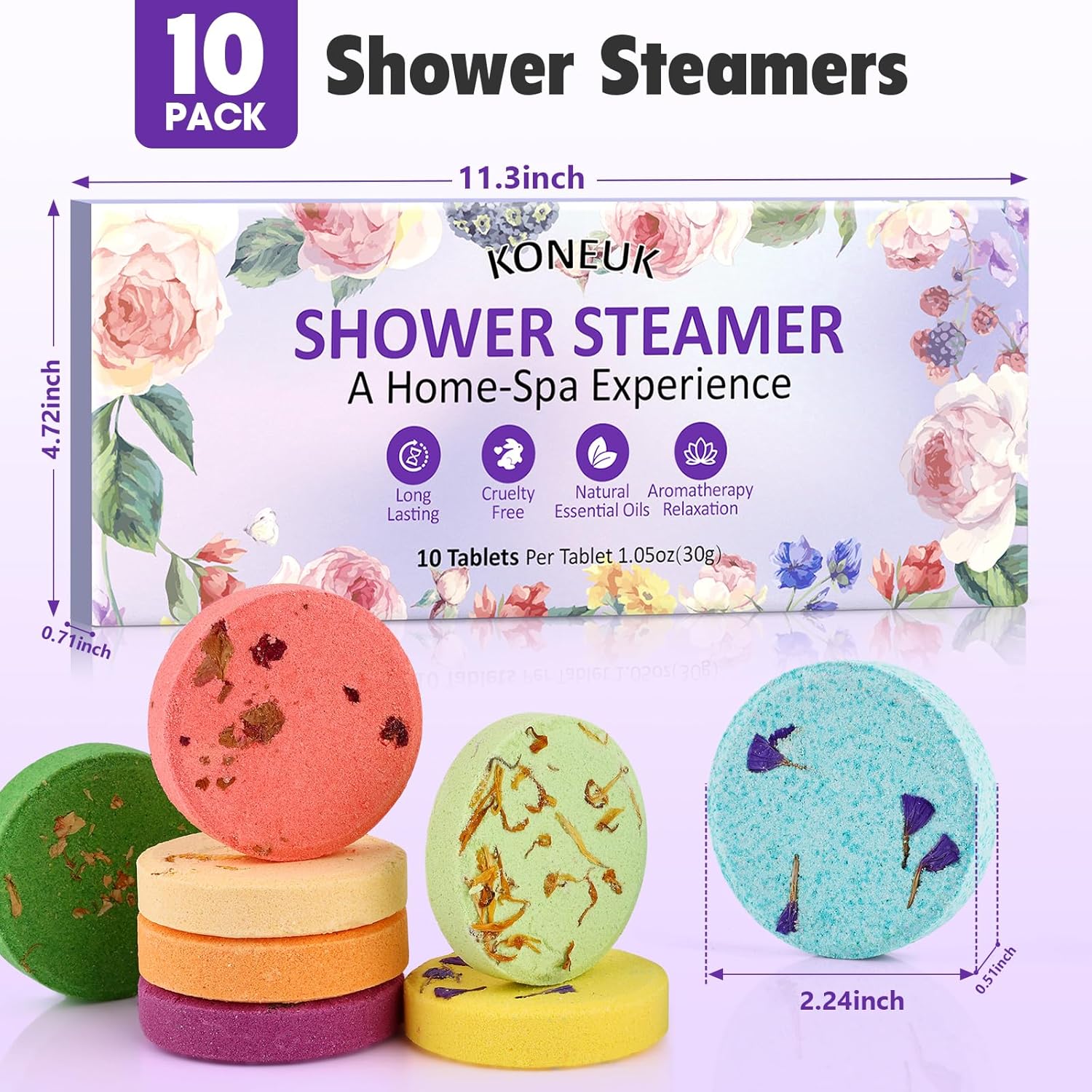 - 【10 Pack Shower Steamers Set】Our shower steamers aromatherapy gift set comes in 10 different scents-lemon,rose,eucalyptus,grapefruit,sweet orange,tea tree,vanilla,watermelon,lavender,mint.The rich fragrance allows you to feel an exceptional sense of relaxation every time you shower