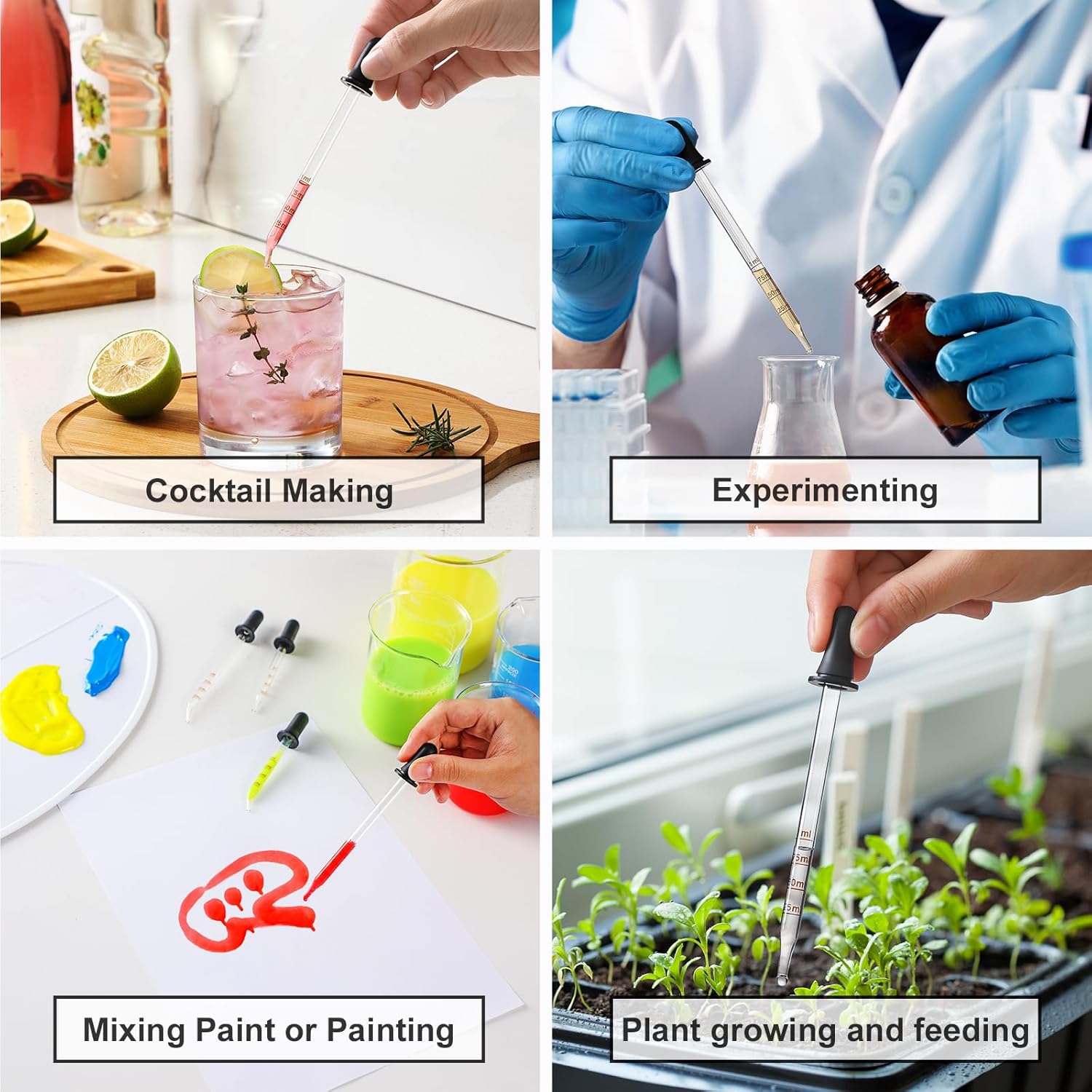 - Multiuse - Great for dispensing essential oil for beauty / care, eye care, ear care, pet feeding, cocktail making, mixing paint or painting, experimenting, plant growing and feeding and more.