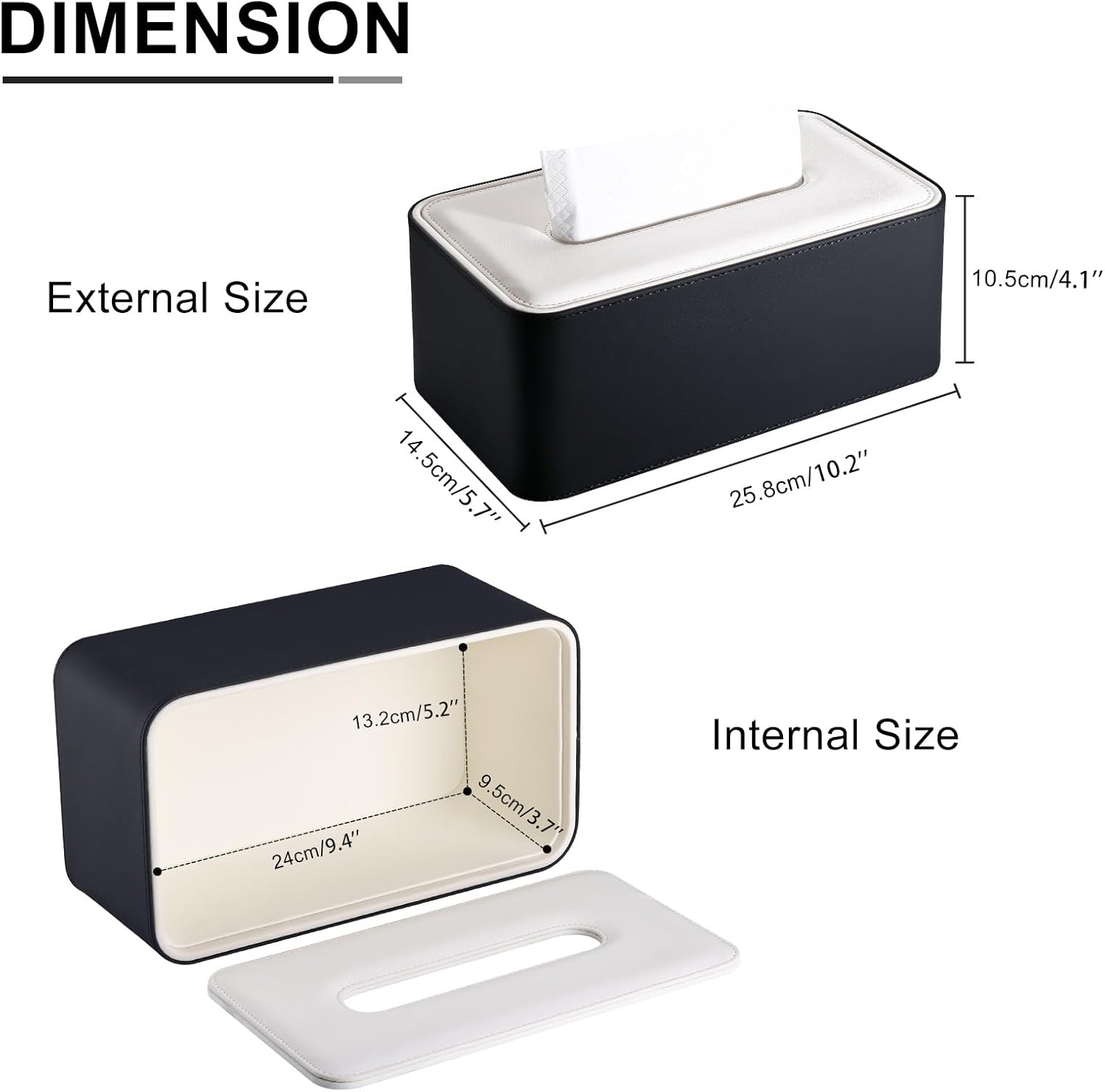 - Suitable Size: About Overall 25.6 x 14.6 x 10.5cm/10 x 5.7 x 4.1 Inches, Inner size: 9.25 x 4.9 x 3.74 inches(L x W x H); Note: Please remove the tissues from their cardboard box then insert into the leather tissue box when the entire box does not fit in the case; *PLEASE* verify whether your tissue can be placed