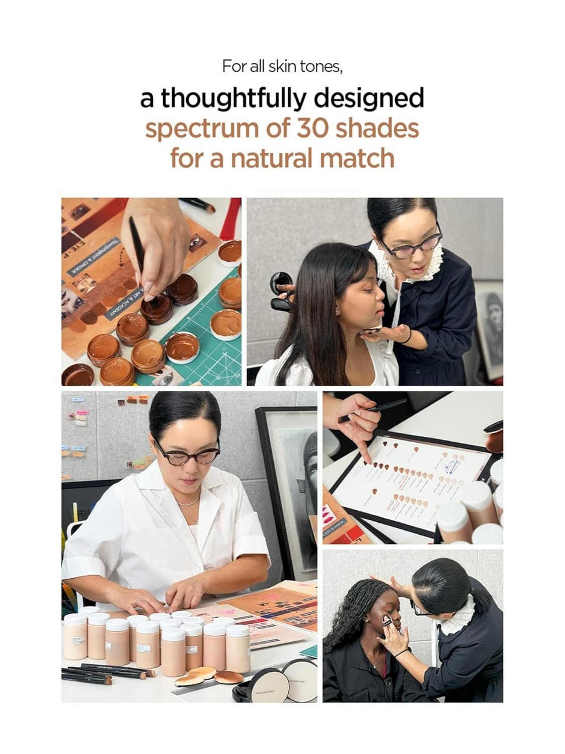 - CUSHION FOUNDATION WITH NATURAL RADIANT FINISH & SKIN-LIKE TEXTURE: Created by renowned Korean makeup artist Jung Saem Mool, a pioneer in “glass skin” and natural complexion makeup, this cushion foundation delivers a dewy glow that mimics healthy, real skin. Known for decades of backstage experience, Jung’s artistry ensures flawless results for daily foundation routines and professional wear alike