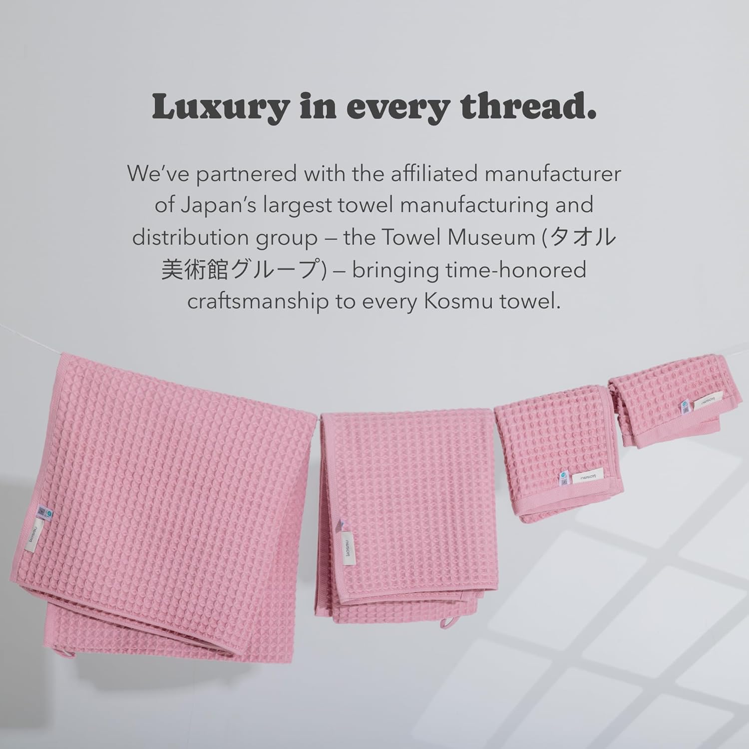 - Get bone dry every A.M.: While the waffle structure intrinsically maximizes surface exposure for airflow for guaranteed breathability, allowing the towel to dry itself out quickly, we have fundamentally improved the performance of Kosmu Towel with advanced science and technology.