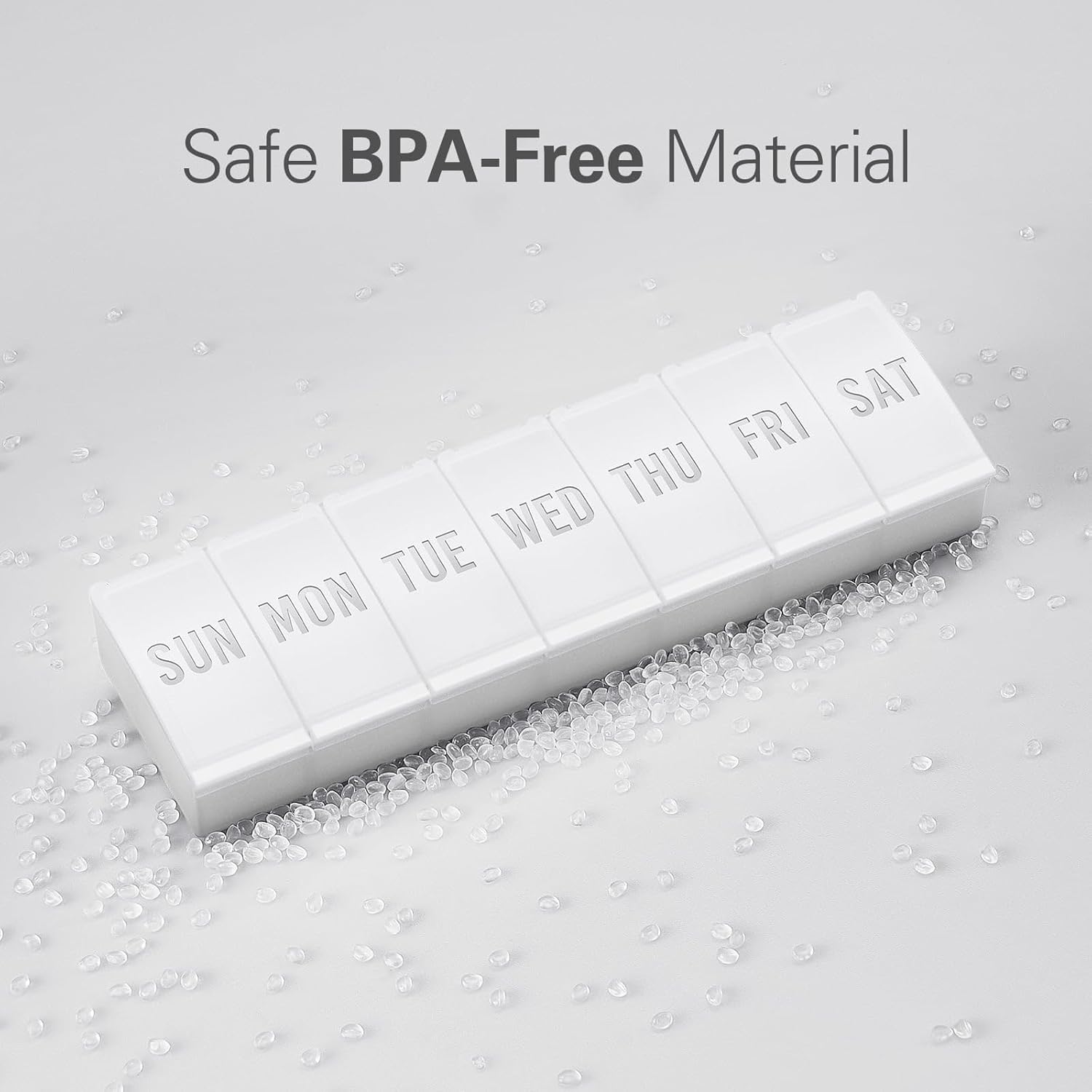 - BPA-Free Materials: Pill holder is made of food-grade PP plastic, BPA-free, safe for medical use. Sturdy and durable, the snap-shut lids would never pop up even when dropped.