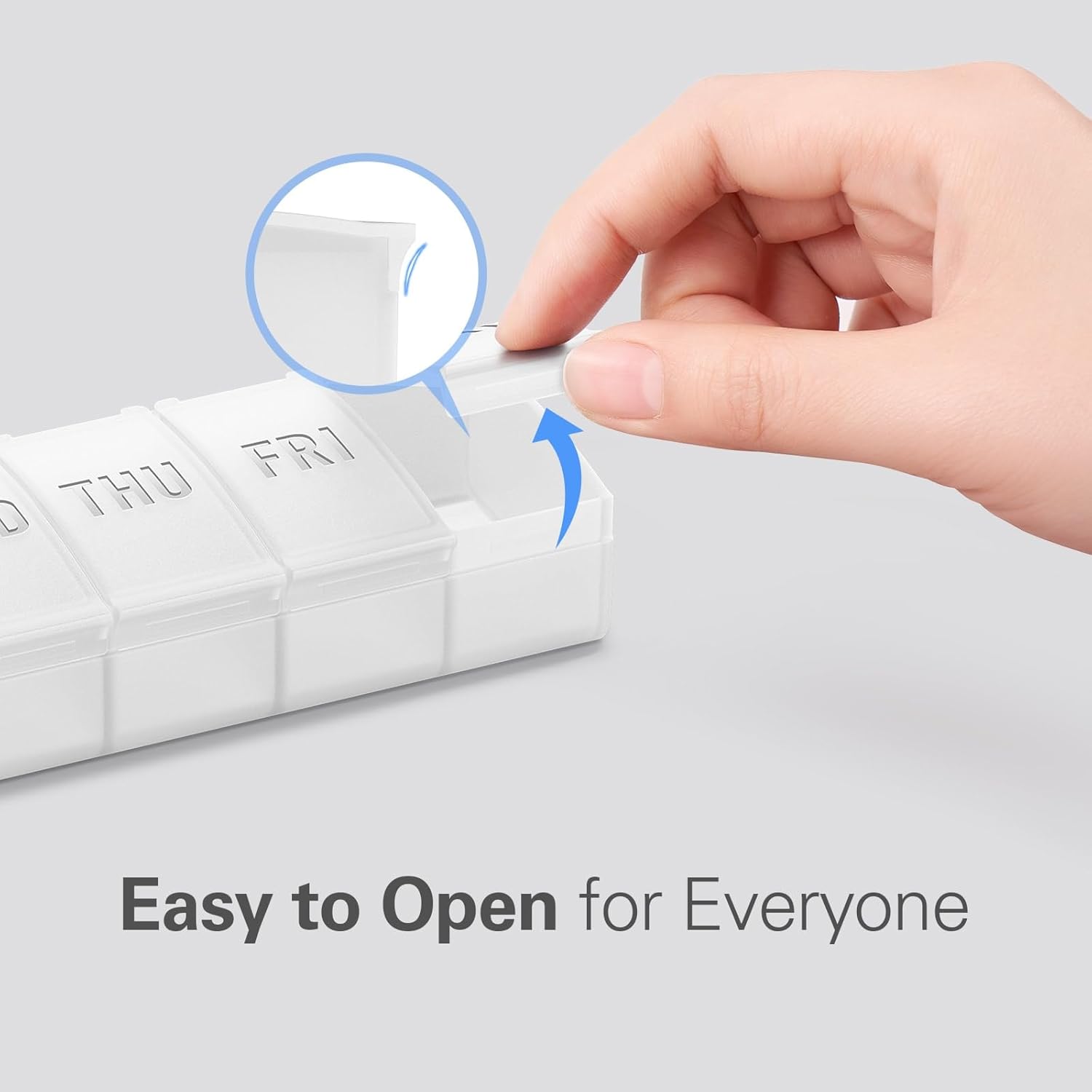 - Upgraded Easy Open Design: Ingenious design with protruding edge of the lids makes the pillbox easy to open, no problem for the elderly or arthritis.