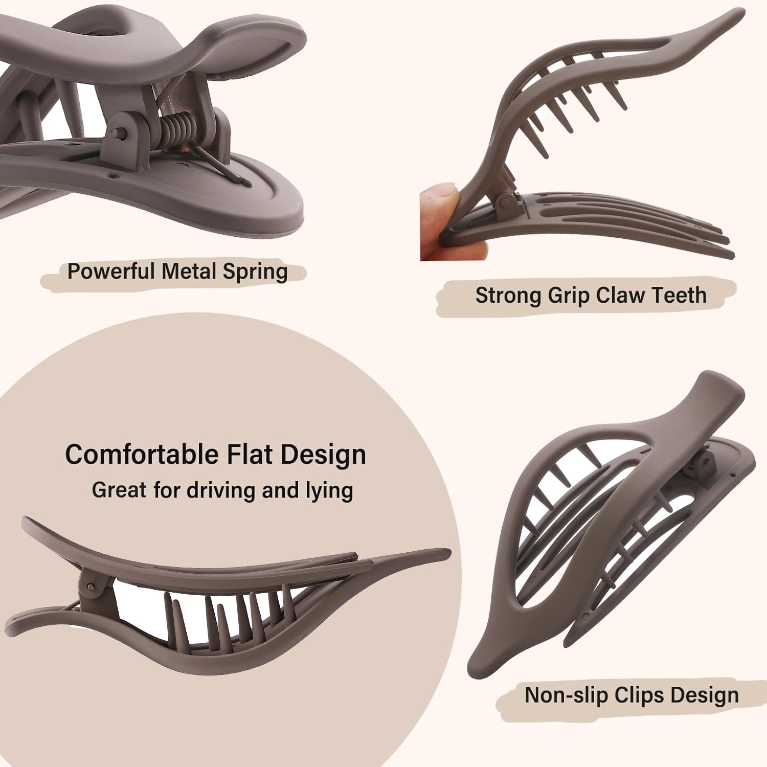 8 PCS Flat Hair Clips, 3 Styles Large Flat Claw Clips for Women, French Strong Hold Non-slip Duckbill Hair Claws for Thin Thick Hair(Matte)