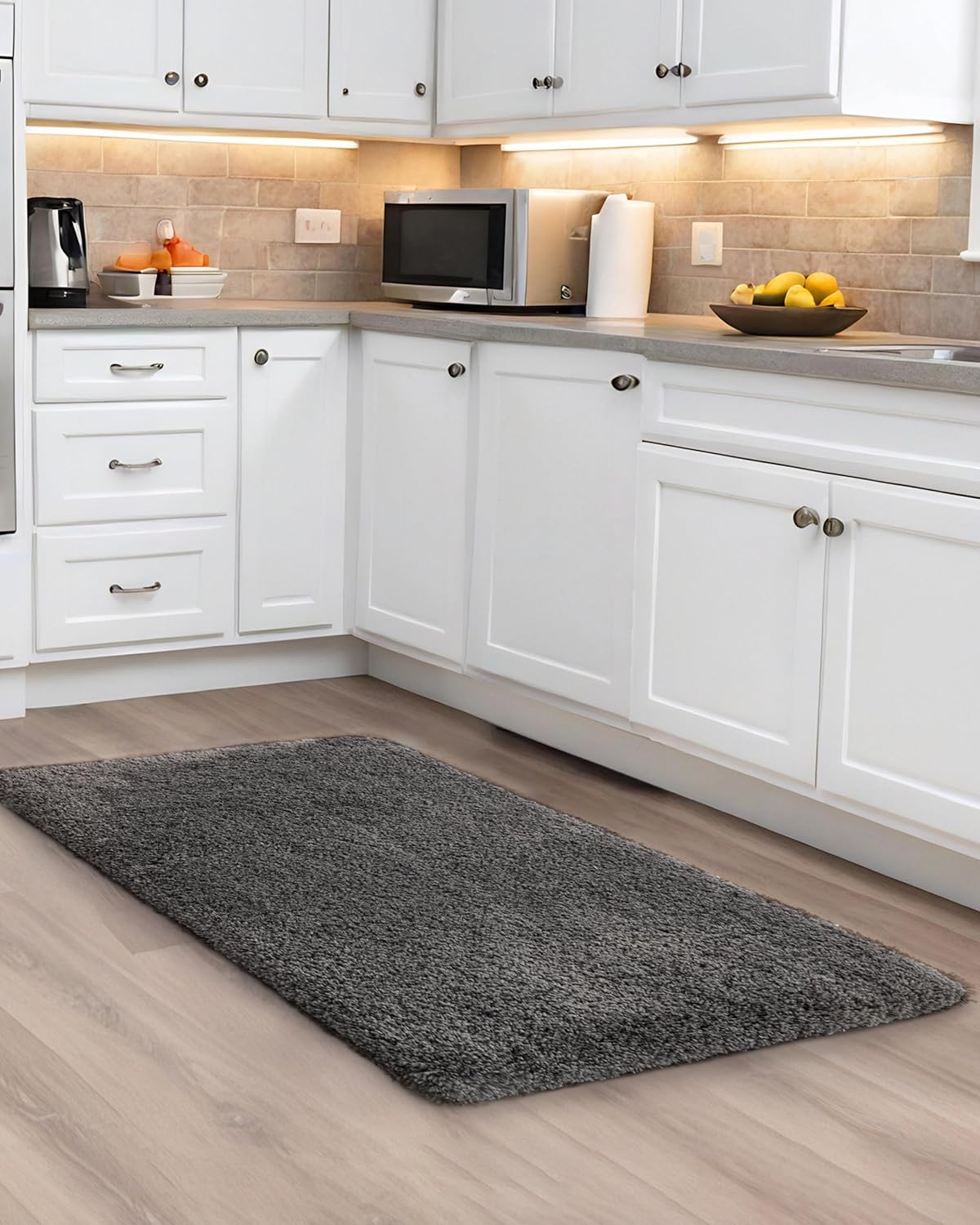 ILANGO Dark Gray Bathroom Rugs 24" × 17" Small Non Slip & Super Absorbent Extra Thick Soft, Washable Bath Mat for Floor, Microfiber Plush Shaggy Bath Rug with Rubber for Bathtub Shower Room Sink