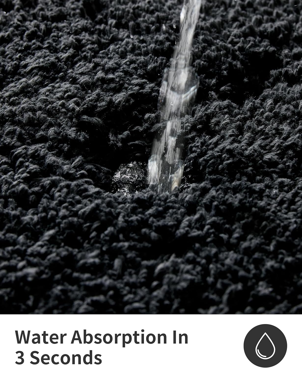 ILANGO Black Bathroom Rugs 24" × 17" Small Non Slip & Super Absorbent Extra Thick Soft, Washable Bath Mat for Floor, Microfiber Plush Shaggy Bath Rug with Rubber for Bathtub Shower Room Sink