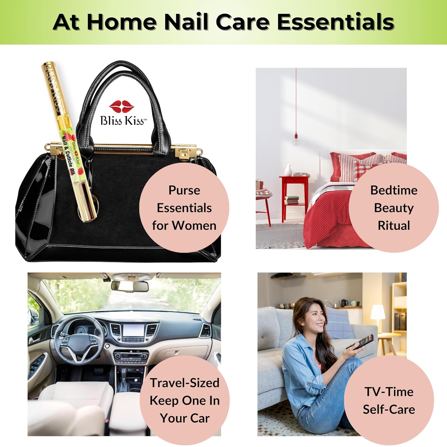- Mess-Free, On-the-Go Application – The Bliss Kiss cuticle oil pen allows for precise, controlled nail strengthener and growth serum application without spills. Convenient nail growth oil for use at home, the office, or on the go.