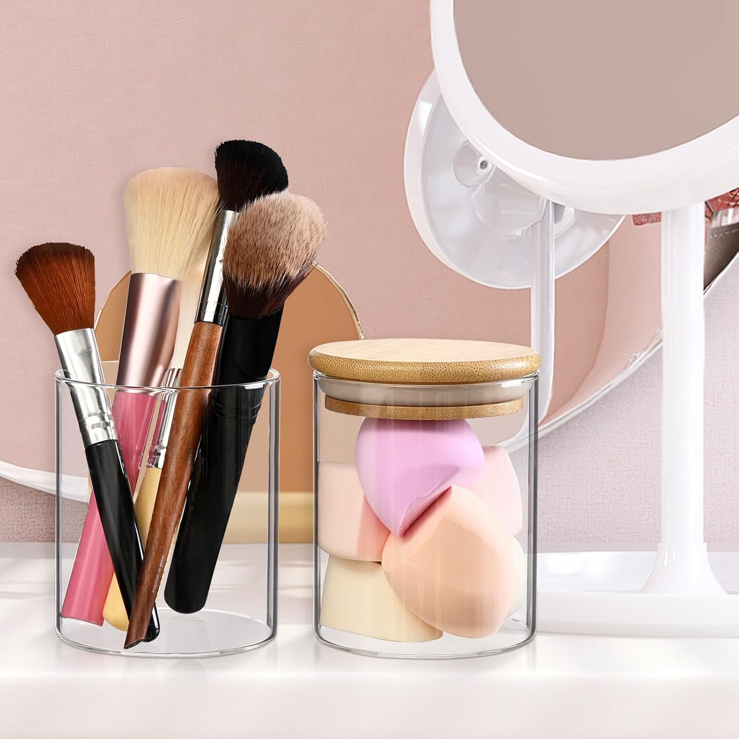 - Multifunctional bathroom apothecary jars: These qtip holders are great for organizing small items, very easy to store and take out, this bathroom vanity qtip holder can perfectly organize cotton swabs, cotton pads or cotton balls, hair ties, dental floss sticks, toothbrush heads, small accessories, and other small items around the home.