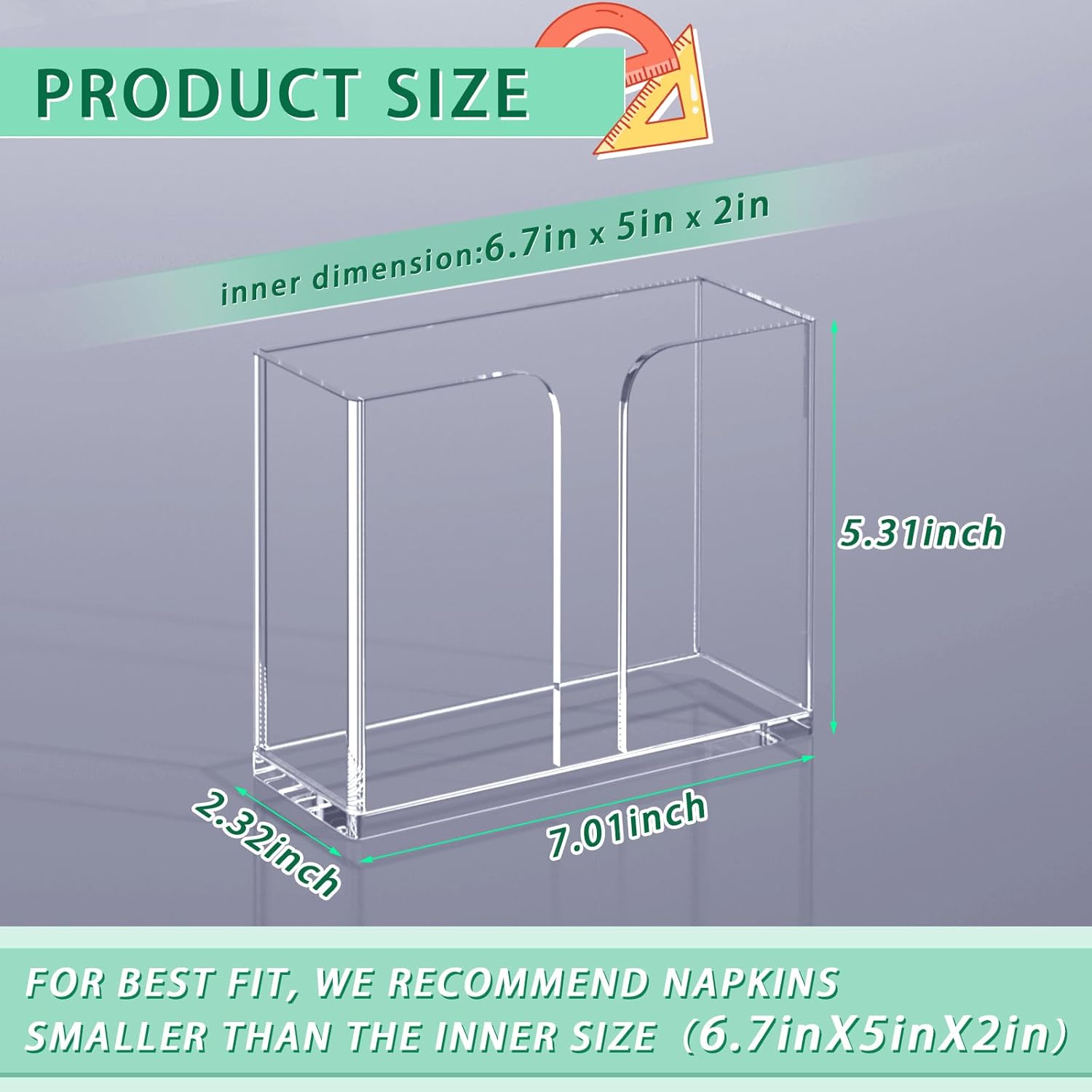 - 【 Fits Most Standard-Sized Napkins 】Inner dimension of [6.7 ] inches, this upright napkin organizer accommodates most napkins, including cocktail napkins, luncheon napkins and guest towels. Perfect for keeping your facial tissues, dinner napkins, or party napkins neatly stored and within reach