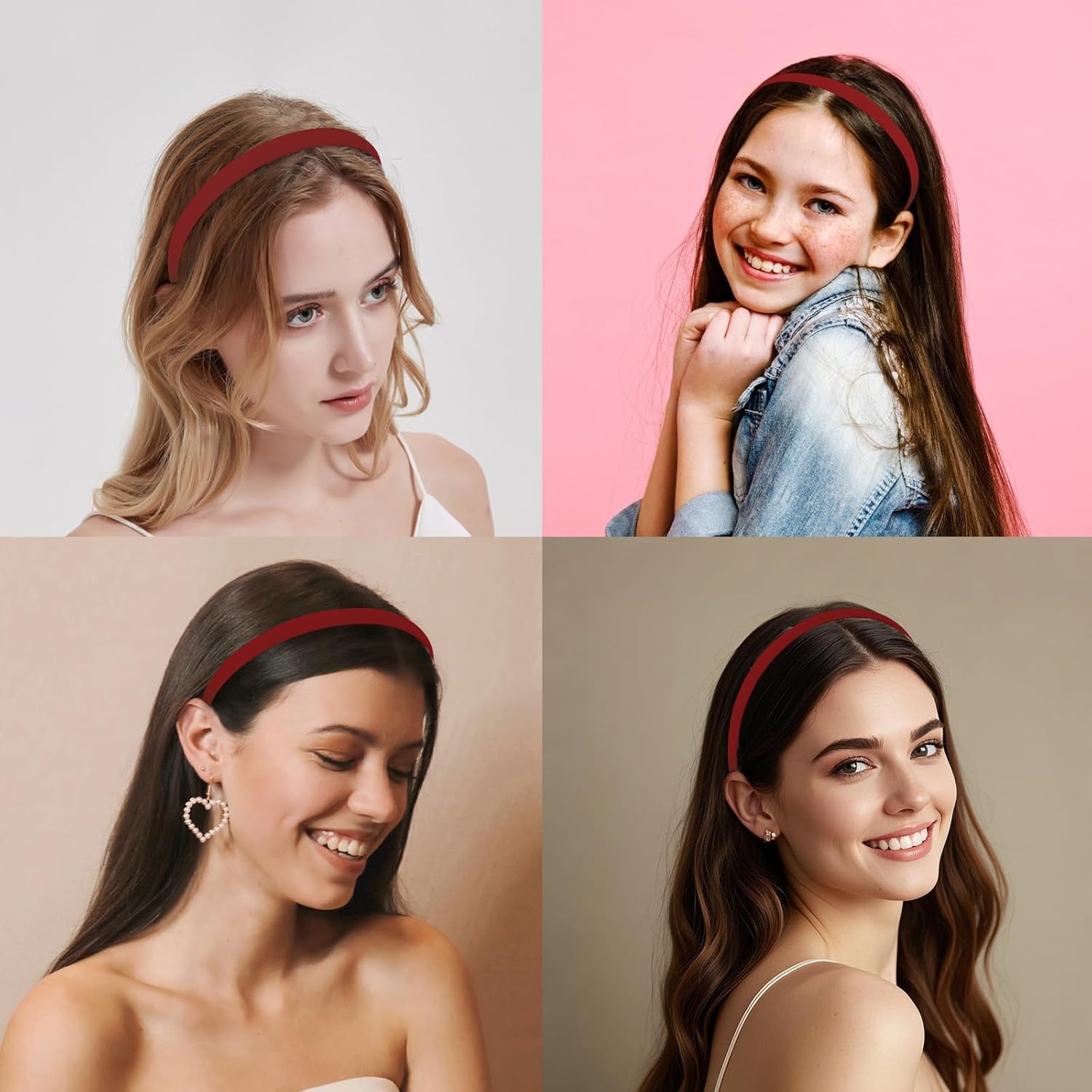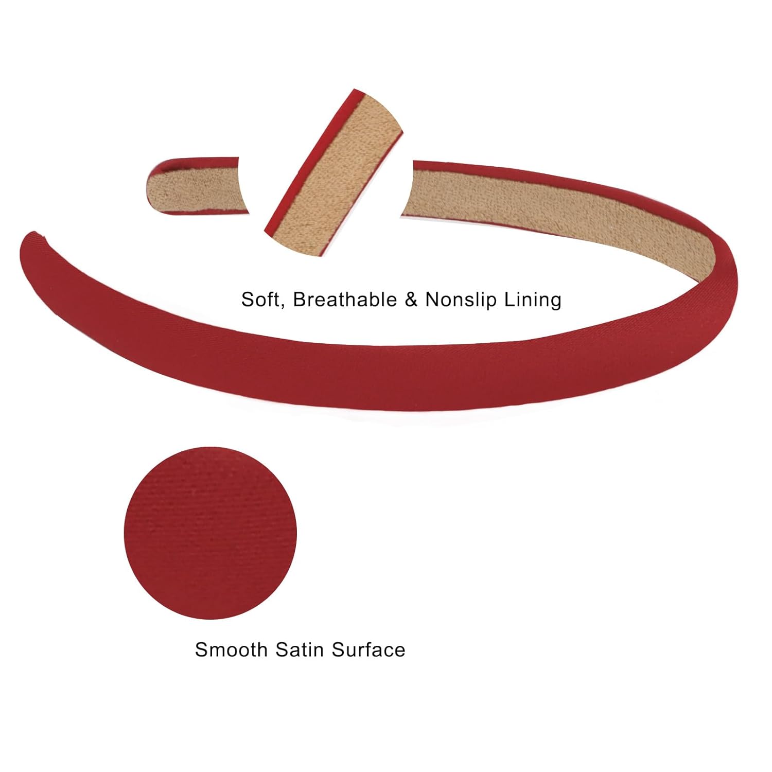 Wecoe Red Narrow Satin Headbands, 10pcs Non Slip Fashion Hair Bands for Women & Girls' Hair - Holiday & DIY Costume Accessories