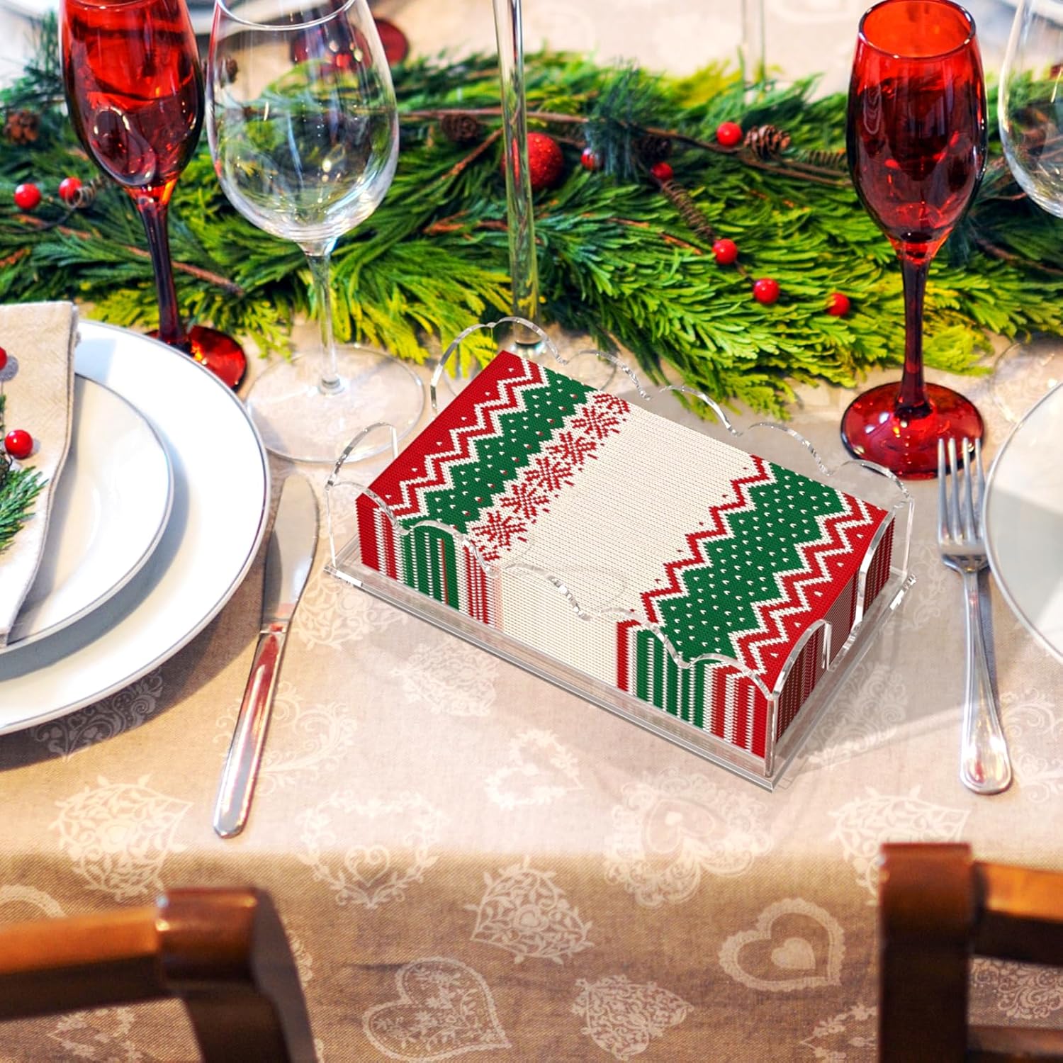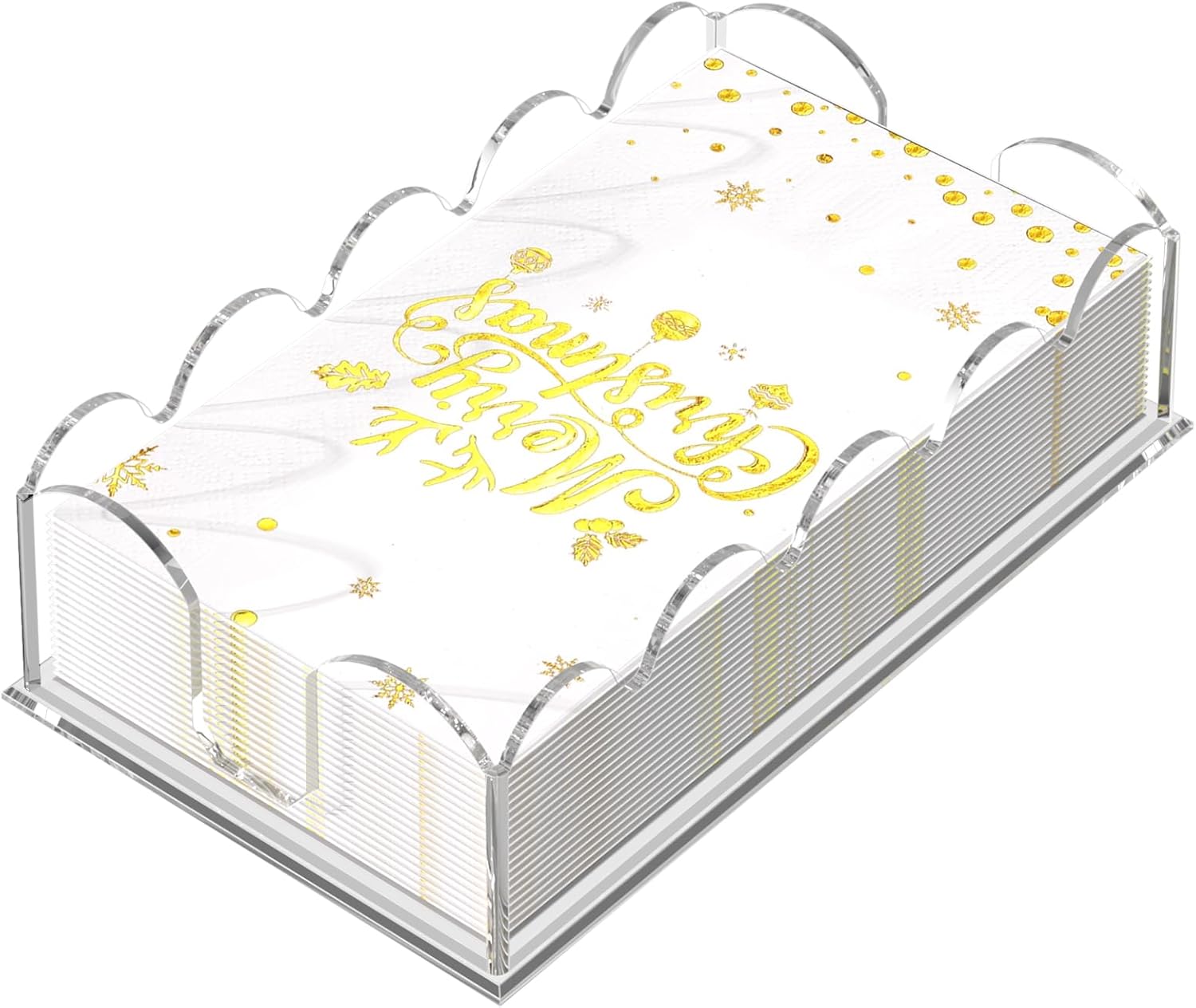 - 【 Premium Crystal-Clear Acrylic Design】Showcase your beautiful decorative napkins in style with PITBVO scalloped-edge acrylic napkin holder! Made from high-clarity lucite acrylic, this modern napkin dispenser highlights your patterned cocktail napkins, dinner napkins, or guest towels while adding a touch of sophistication to any table setting