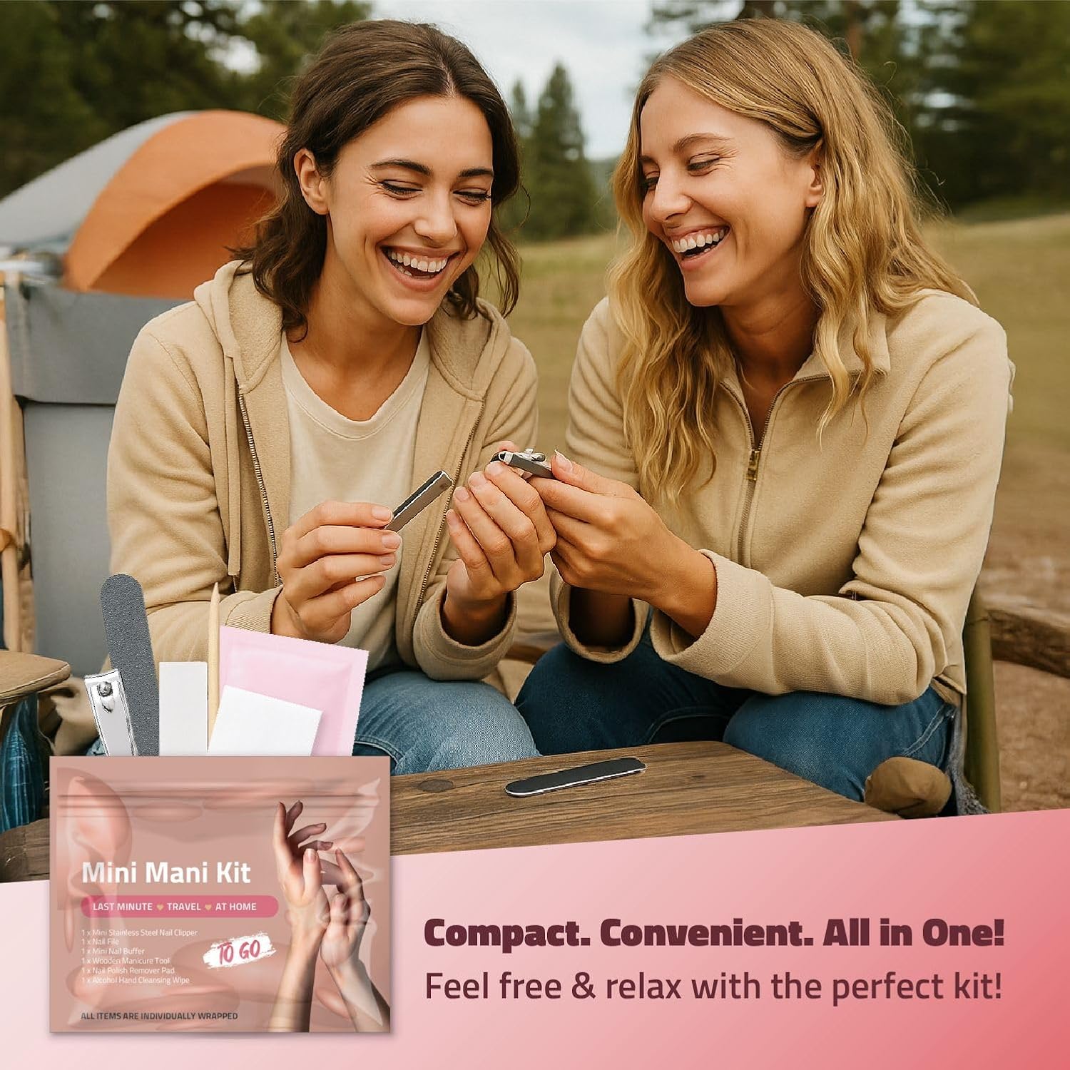 - ALL IN ONE NAIL FIX ON THE GO: Each kit includes a stainless steel nail clipper, nail file, mini buffer, wooden cuticle stick, nail polish remover pad, and an alcohol hand wipe for quick, clean nail care.