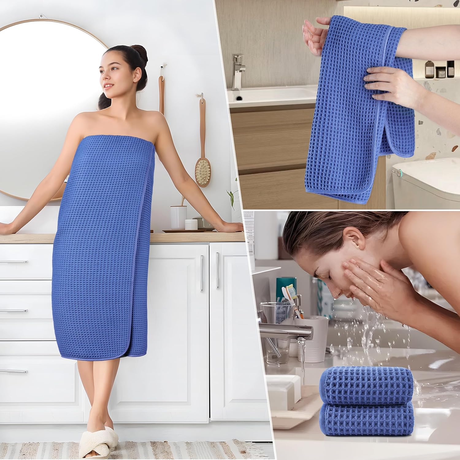 - Microfiber thoroughly dries faster and gentler than traditional fibers; waffle weave feels smoother on your skin and is less likely to collect lint or debris