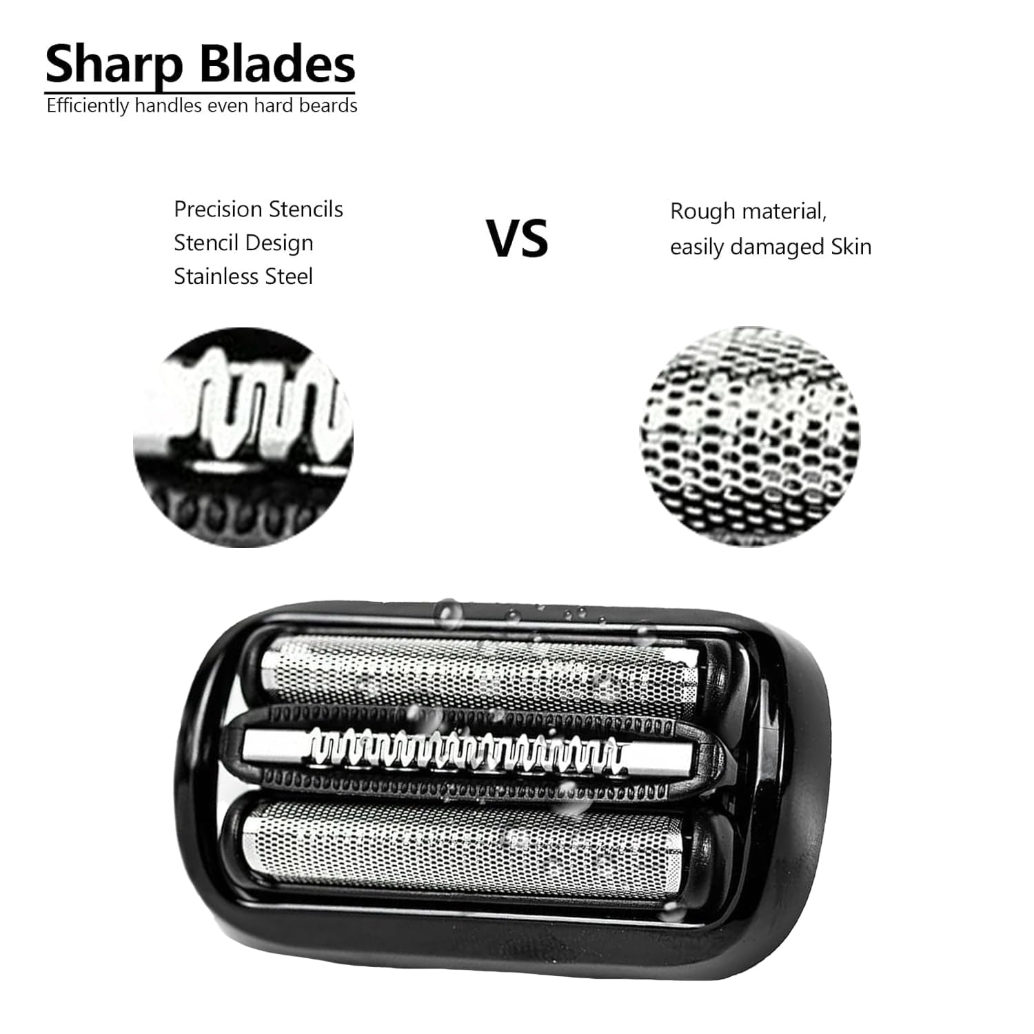 - PERFECT DESIGN - 53B replacement head for braun series 5/6 electric shaver is designed with stainless steel mesh, which can perfectly fit your skin and work without harming your skin, so that you can have a good using experience.