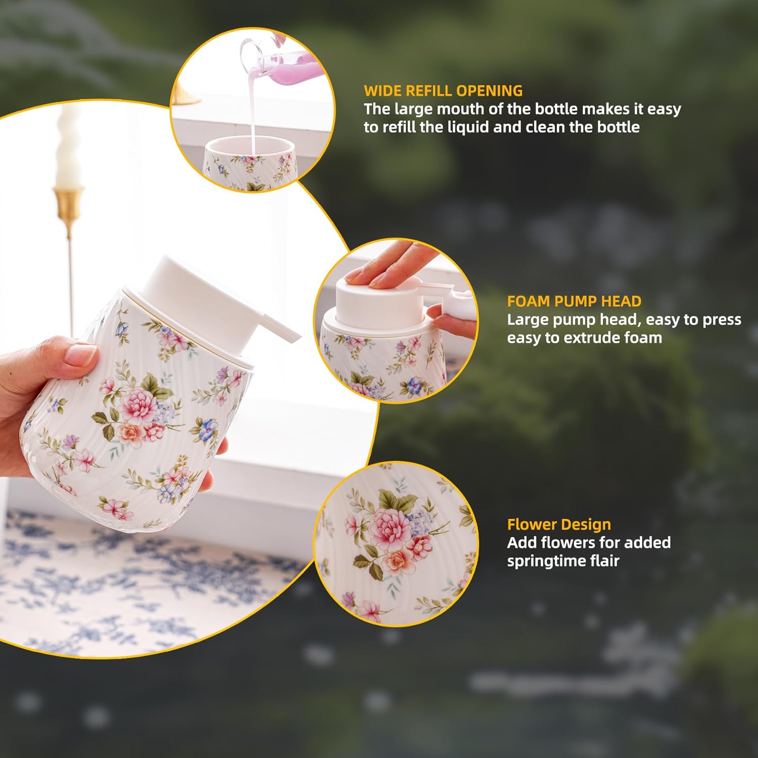 Foam soap Dispenser with Pump,13.5 oz foaming Hand soap Holder with Easy-to-Press Pump for Bathroom refillable Liquid Hand soap Dispenser (Foam-Little Flowers)