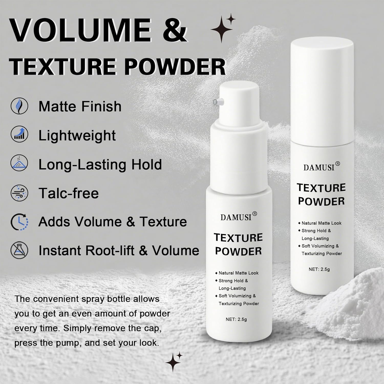 DAMUSI Hair Texture Powder Spray - Lightweight Volumizing and Texturizing Powder for Men & Women, Matte Finish Natural Look Mattifying Hair Volume Styling powder All-Day Hold