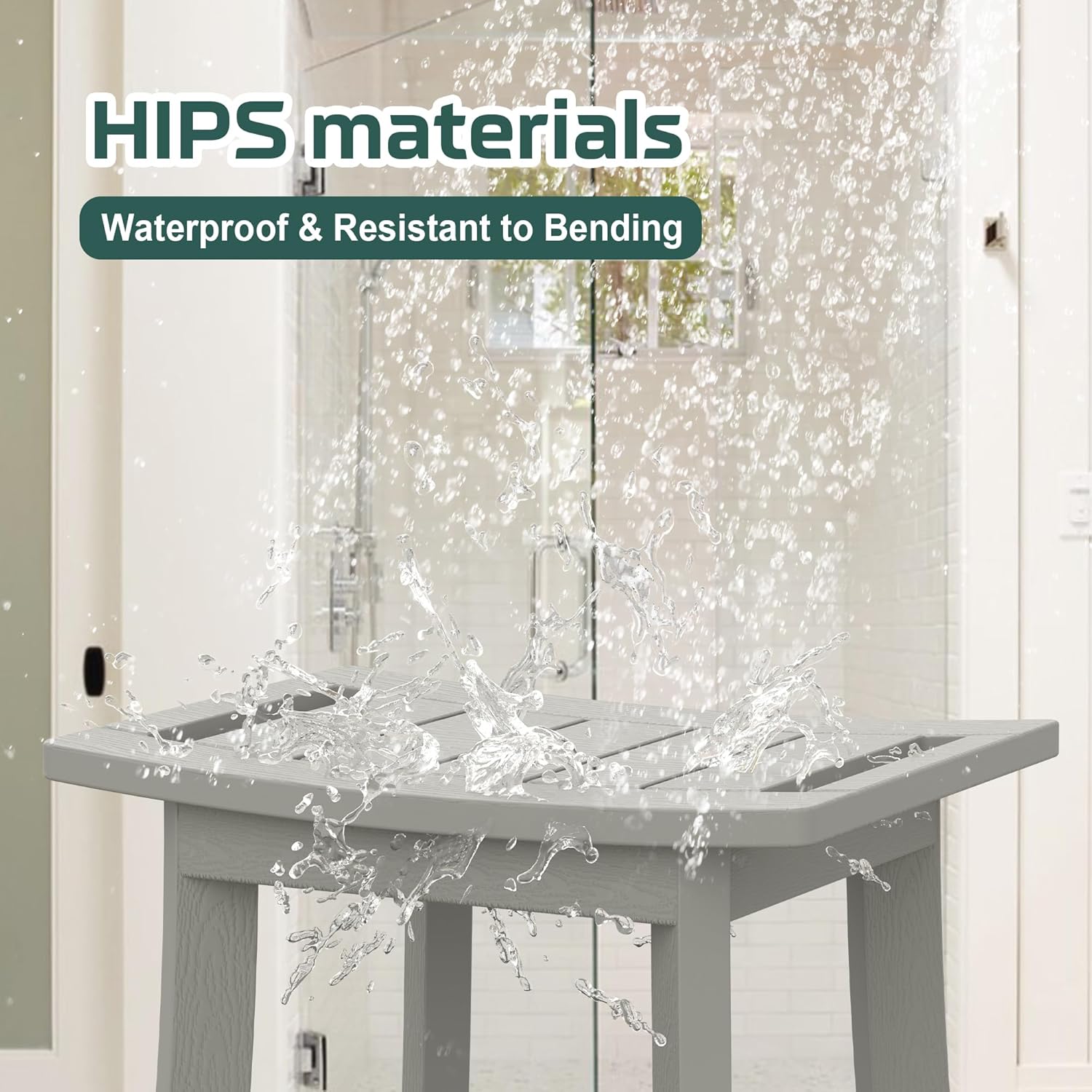 - [Wateproof & Durable]: Made of premium HIPS material and secured with 304 stainless steel screws, this shower stool is safe to wash with water and will never fade or grow moldy. It's built for long-term use with minimal maintenance.
