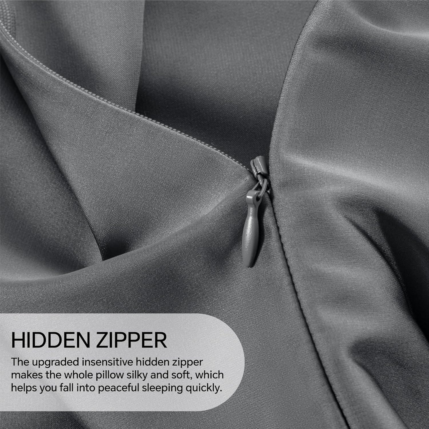 INFIIXSO Mulberry Silk Pillow Cases King Size Set of 2, Silk Pillowcase with Hidden Zipper 20"x36", Extraordinary Smooth and Soft Pillow Case for Hair and Skin(Dark Grey, 2 Pack)