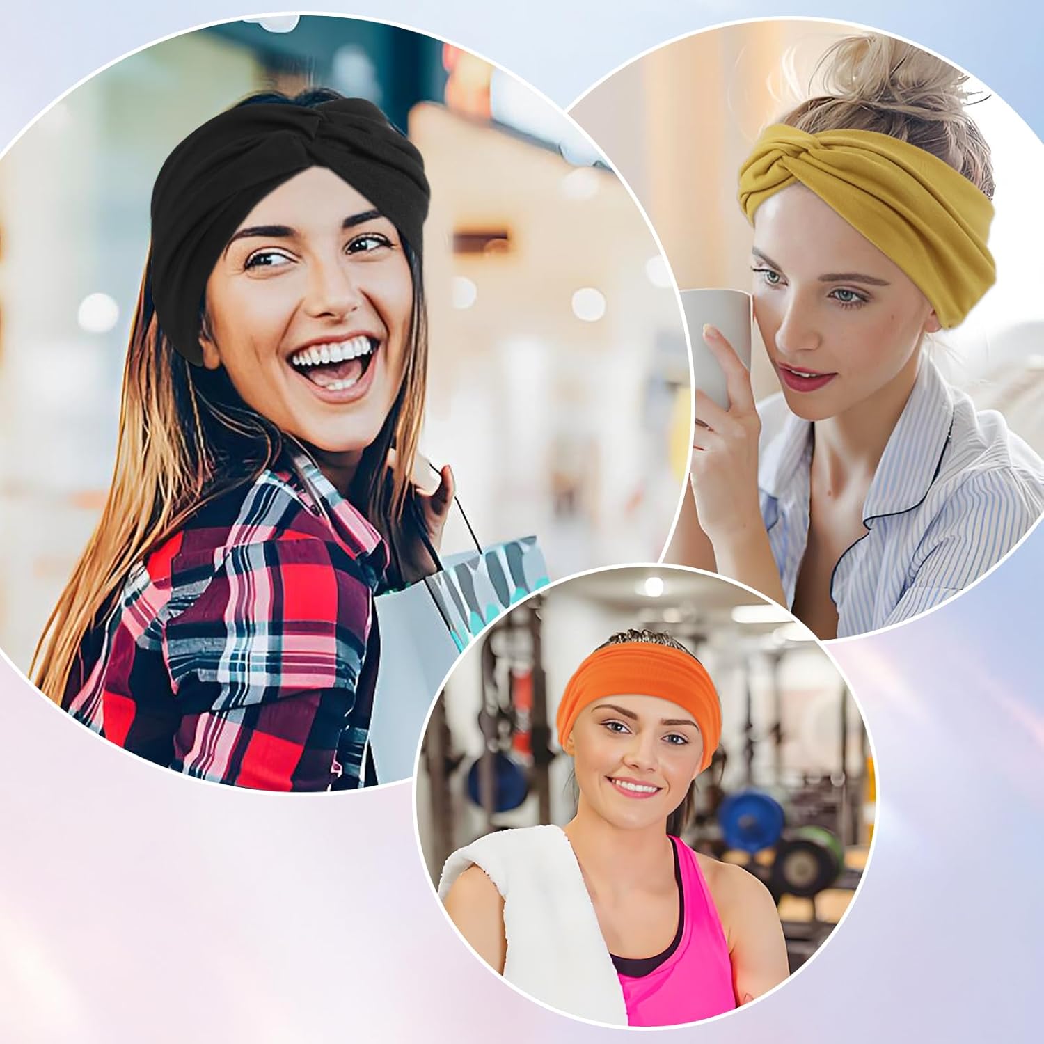 12-Pack Wide Stretch Headbands for Women - Non-Slip Extra Wide Turban Hair Bands for Workout, African Style, Sports & Daily Use (Breathable, All-Day Comfort) Color1 (Color2)