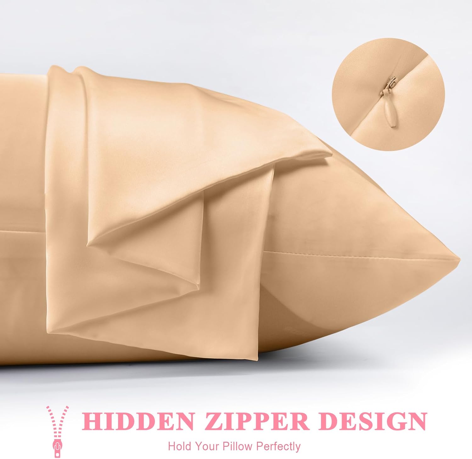 - Hidden Zipper Design: Featuring an invisible zipper design keeps the pillow cases seamless, allowing this silk pillowcase to perfectly support your pillow at night without moving the zipper. The smooth hidden zipper closure is used to open and close the pillowcase, ensuring a seamless look and feel. These pillowcases are carefully crafted by professionals with perfect and reinforced bottoms, sturdy stitching without loose threads. This elegant design choice not only enhances the aesthetic appeal but also contributes to the pillowcase's longevity and ease of use