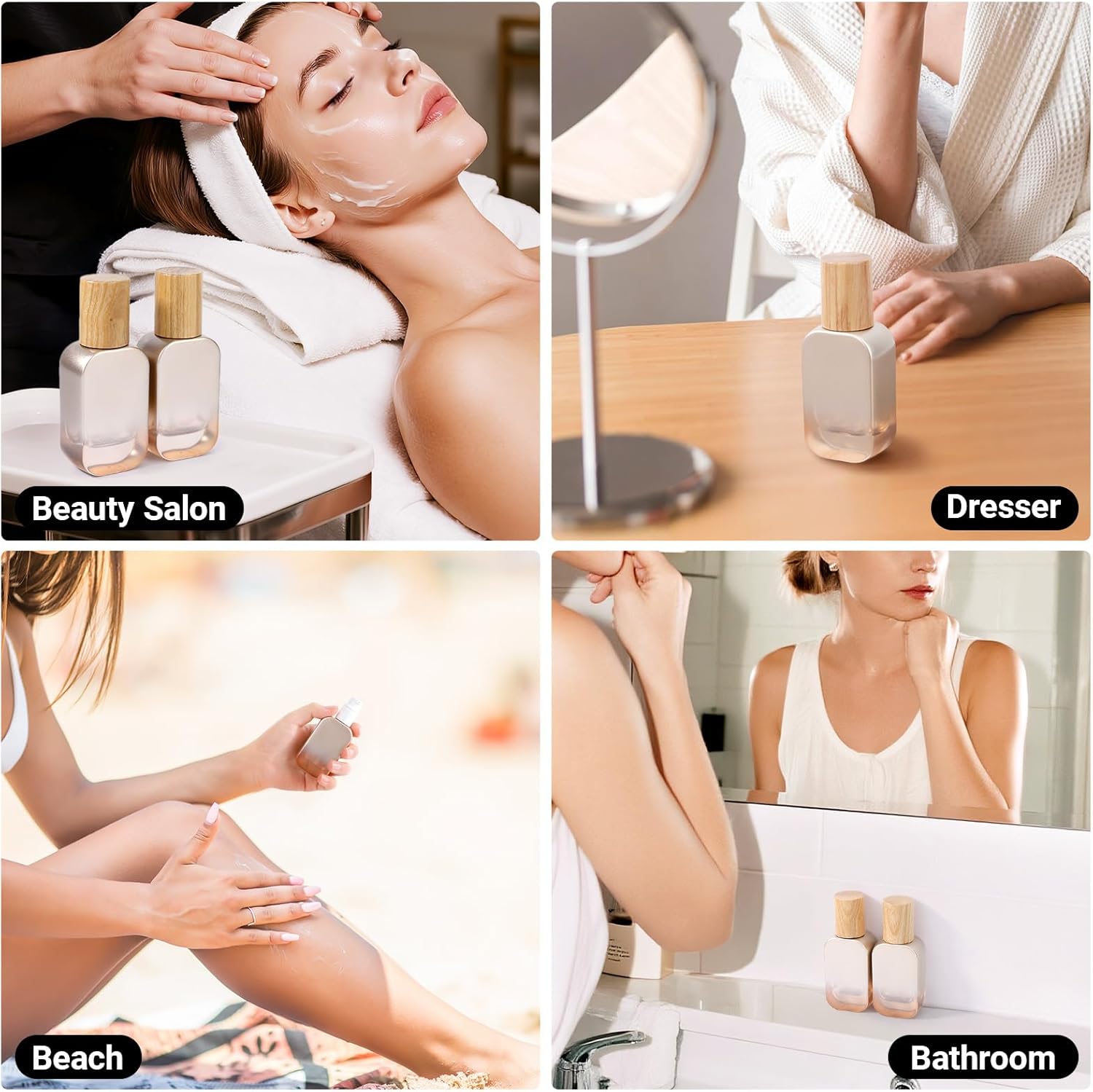 - Multi Usages: Great for storing and dispensing essensial oils, lotion, face cream, skin creams, sun lotion, makeup, shampoo, hand soap, and etc. Suitable for home family daily life, traveling, camping, beach, bussiness trip, hotel, fitness