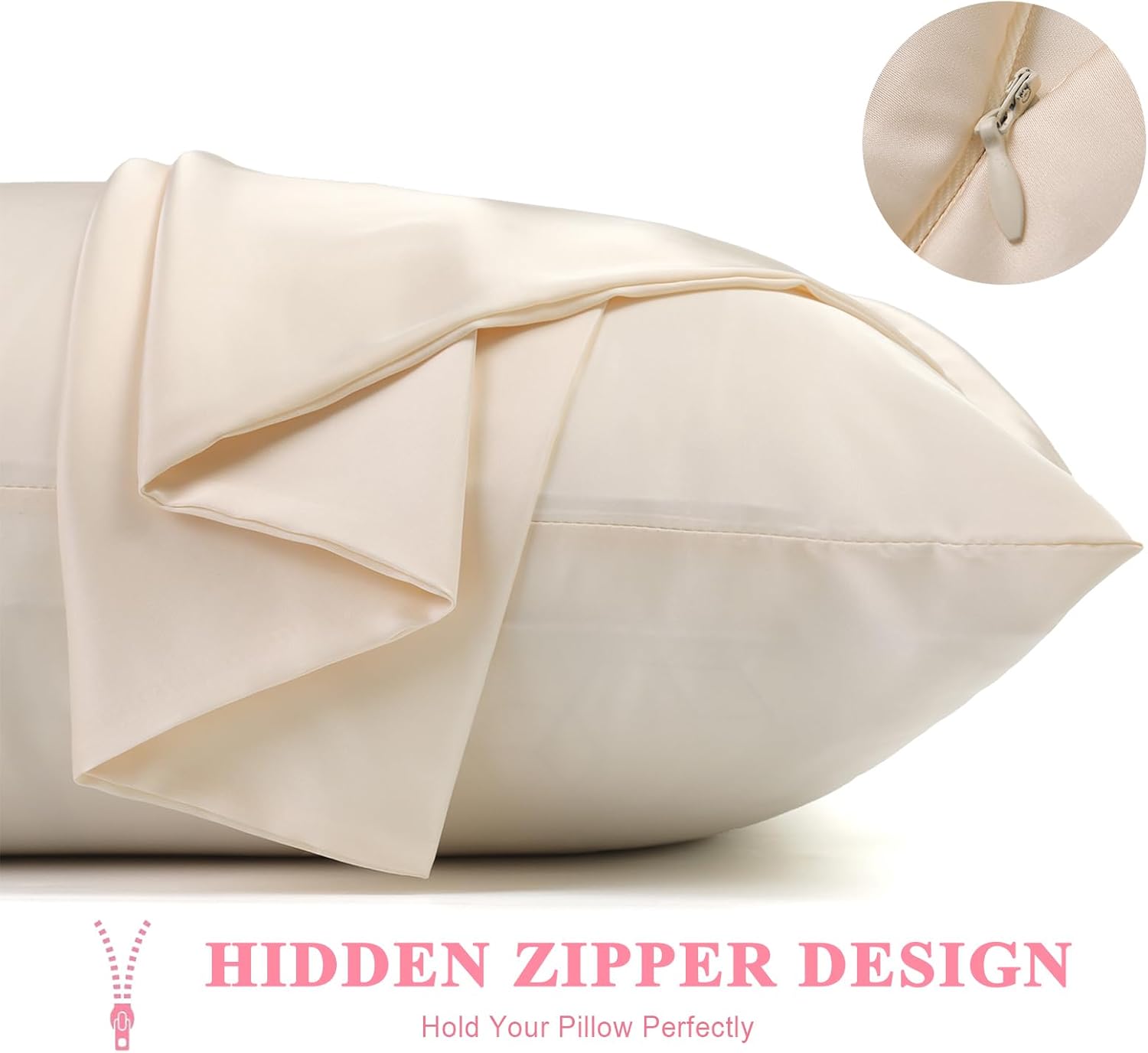 - Hidden Zipper Design: Featuring an invisible zipper design keeps the pillow cases seamless, allowing this silk pillowcase to perfectly support your pillow at night without moving the zipper. The smooth hidden zipper closure is used to open and close the pillowcase, ensuring a seamless look and feel. These pillowcases are carefully crafted by professionals with perfect and reinforced bottoms, sturdy stitching without loose threads. This elegant design choice not only enhances the aesthetic appeal but also contributes to the pillowcase's longevity and ease of use