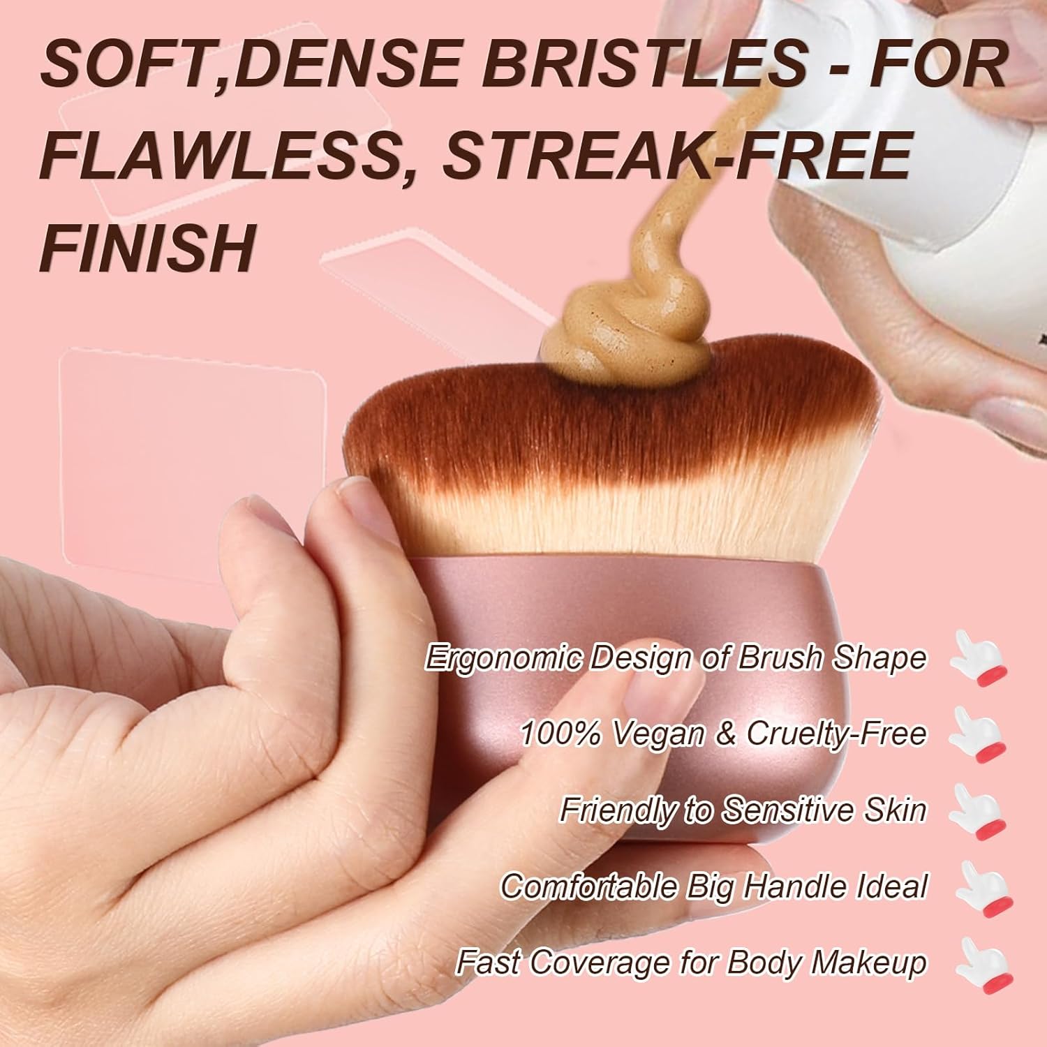 - WET & DRY USE:Our body brush perfectly compatible with both wet and dry products. Whether you're using powder bronzers,body shimmer or liquid foundation, sunscreen, self-tanner, sunless tan, tanning Mousse, tanning lotion, this body makeup brush meets all your diverse beauty needs with exceptional results.