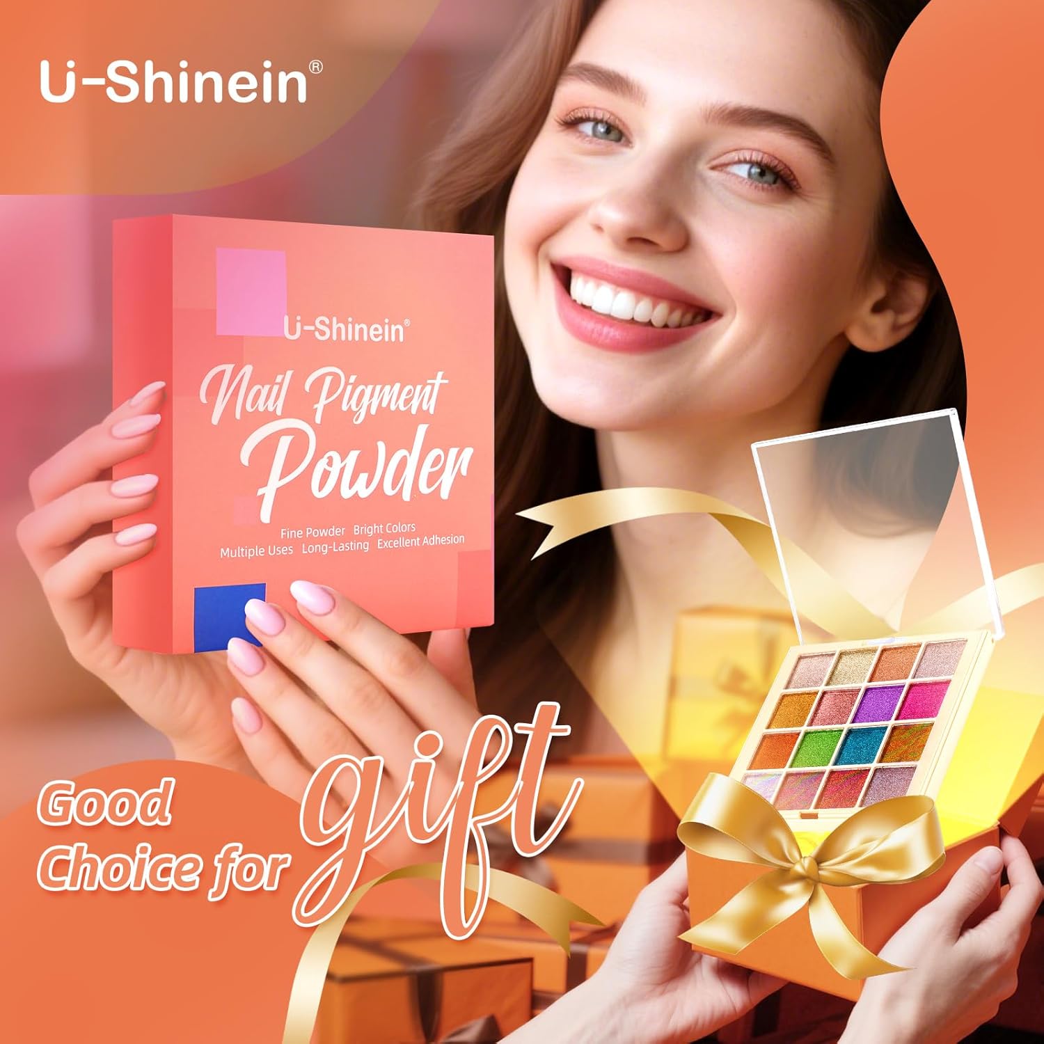 - Widely Used:U-Shinein Nail Pigment Powder Palette is perfect for creating a variety of nail art patterns, one palette contains 16 colors. You can mix and match as you like. It is a must-have tool for professional nail artists, nail art beginners. Enjoy the happiness of color.