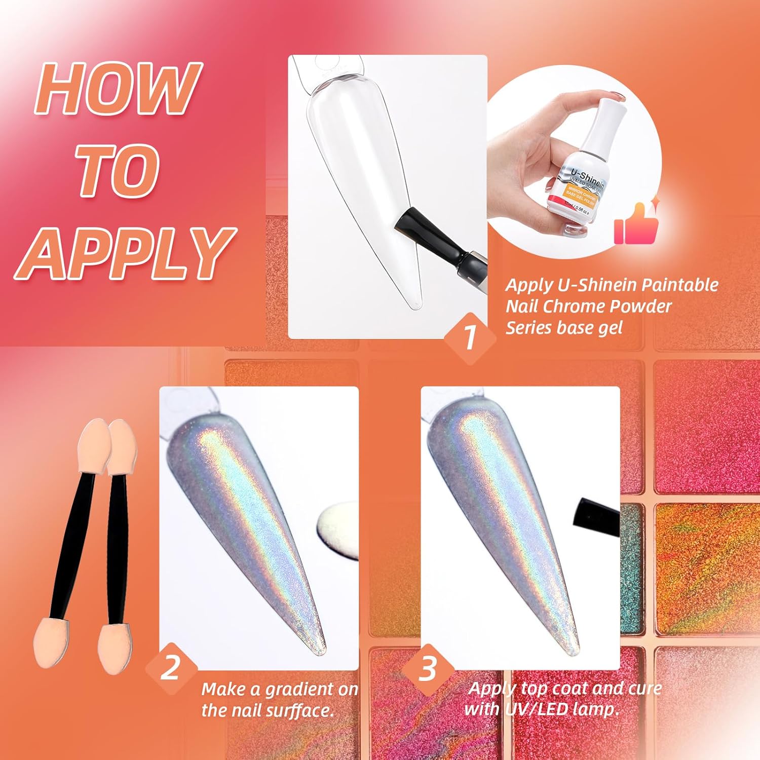 - Premium Formula: U-Shinein nail powders are made with high quality ingredients to ensure excellent adhesion and long-lasting results with a shimmering effect. The texture is fine and easy to apply for flawless nails. The very fine nail pigment powder has a silky texture.