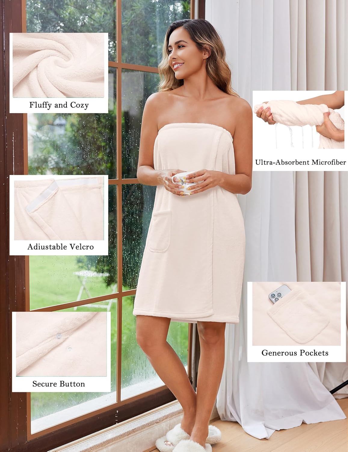 - 【Versatile 3-in-1 Design: Wrap, Robe & Cover-Up】More than just a shower wrap, this stylish piece functions as a bath robe wrap, a bath wrap dress, and even a chic poolside swim after wrap cover-up. Whether you're lounging at home or traveling, this wrap towel for women blends comfort and elegance effortlessly.