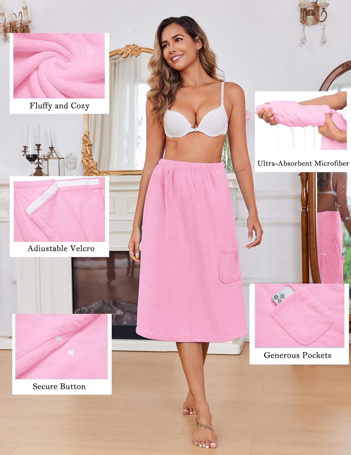- 【Versatile 3-in-1 Design: Wrap, Robe & Cover-Up】More than just a shower wrap, this stylish piece functions as a bath robe wrap, a bath wrap dress, and even a chic poolside swim after wrap cover-up. Whether you're lounging at home or traveling, this wrap towel for women blends comfort and elegance effortlessly.