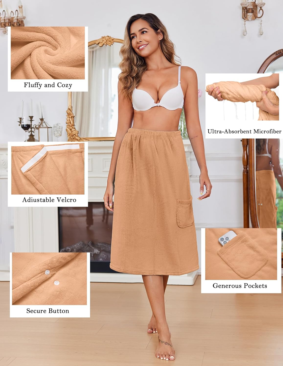 - 【Versatile 3-in-1 Design: Wrap, Robe & Cover-Up】More than just a shower wrap, this stylish piece functions as a bath robe wrap, a bath wrap dress, and even a chic poolside swim after wrap cover-up. Whether you're lounging at home or traveling, this wrap towel for women blends comfort and elegance effortlessly.