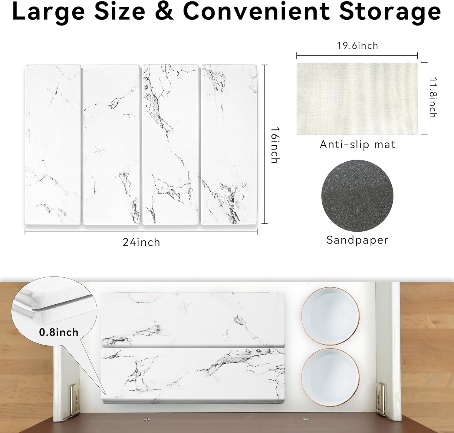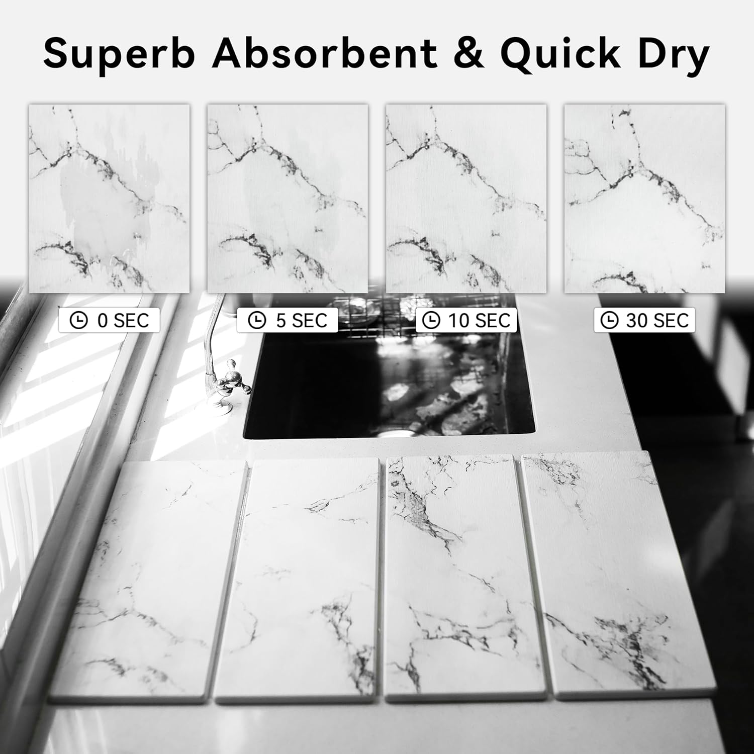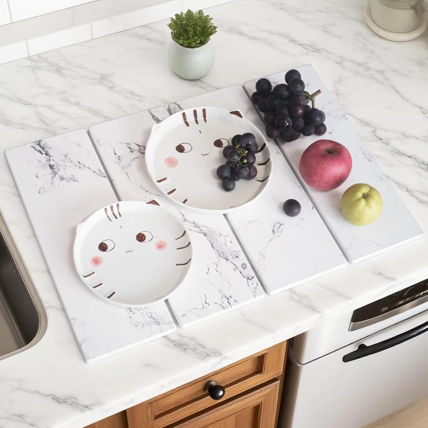 Stone Dish Drying Mat for Kitchen Counter, 24" x 16" Diatomaceous Earth Drying Mat, Foldable Stone Drying Mat, Super Absorbent Fast Dry Stone Mat, Drying Board Diatomaceous for Kitchen, Marble White