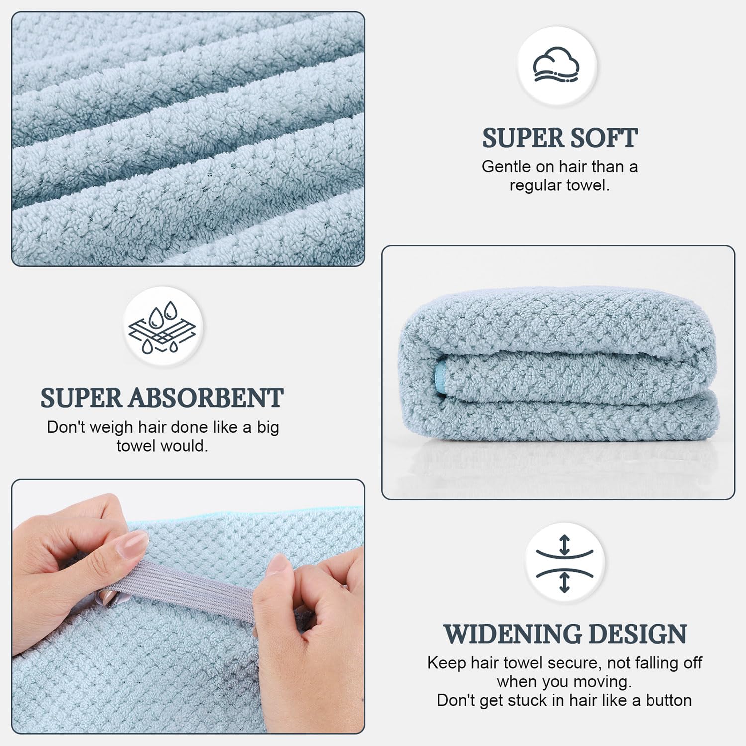 - Dries Hair Quickly: Hair towel is made of super absorbant microfiber fabric, fast absorbing for quick hair dry. Microfiber hair towel absorbs a lot of the water from hair which cuts the drying process in half. This makes hair routine go faster.
