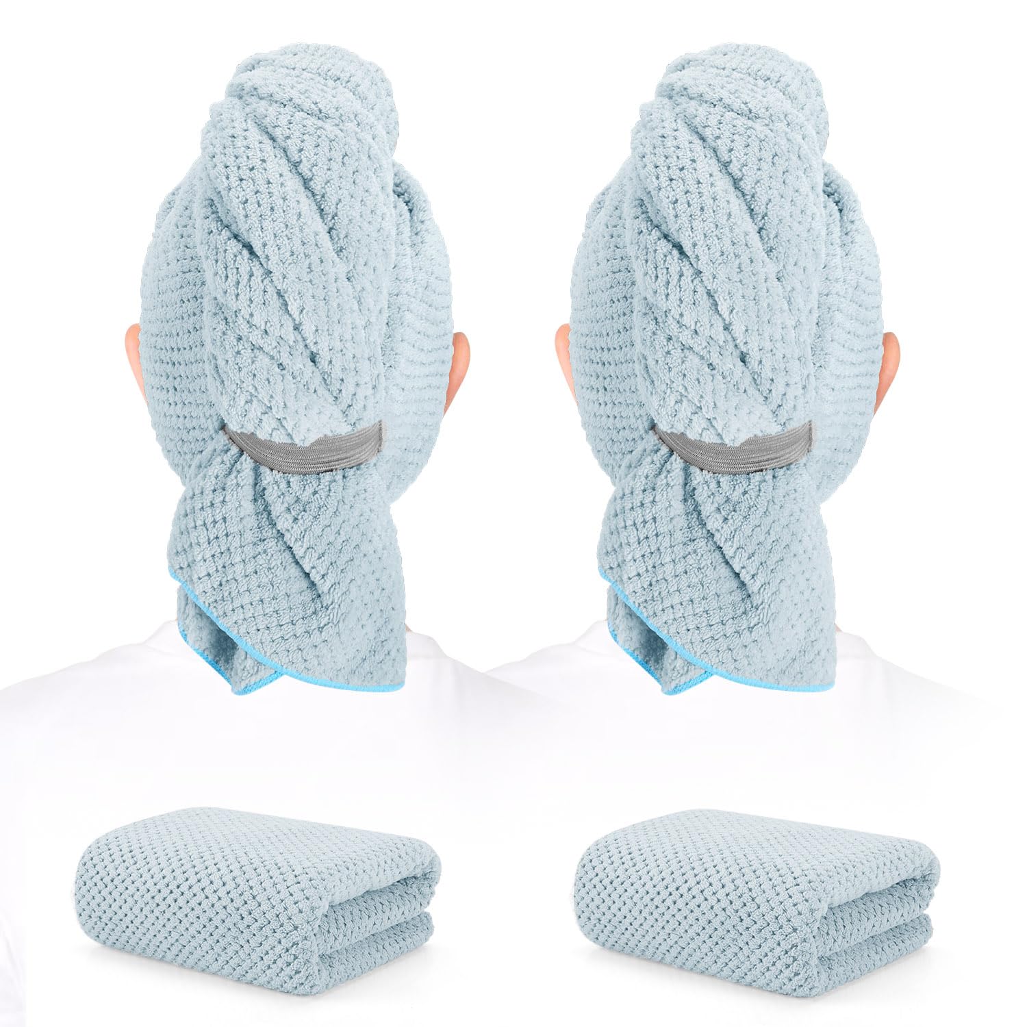 BEoffer 2 Pack Microfiber Hair Towel - 41 x 24 inches Super Soft, Absorbent, Fast Drying Without Frizz Hair Towel Wrap for Women Long, Thick, Curly Hair - Hair Turbans with Elastic Strap