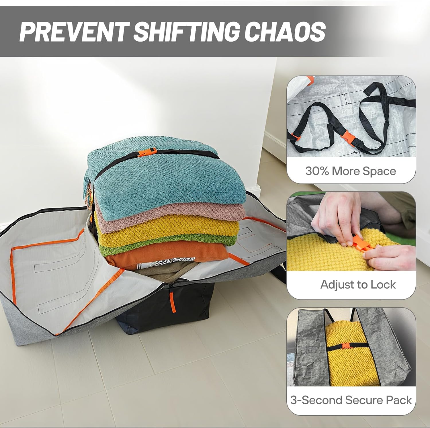 2 Pack Moving Bags, Heavy Duty Storage Bags with Zipper, Extra Large Packing Bags with Internal Compression Straps, Wrap Around Handles, Alternative to Moving Boxes, Grey and Black