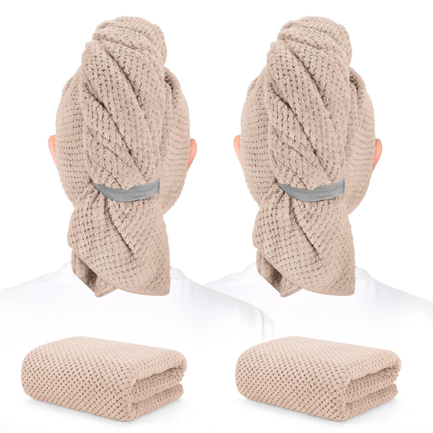 BEoffer 2 Pack Microfiber Hair Towel - 41 x 24 inches Super Soft, Absorbent, Fast Drying Without Frizz Hair Towel Wrap for Women Long, Thick, Curly Hair - Hair Turbans with Elastic Strap