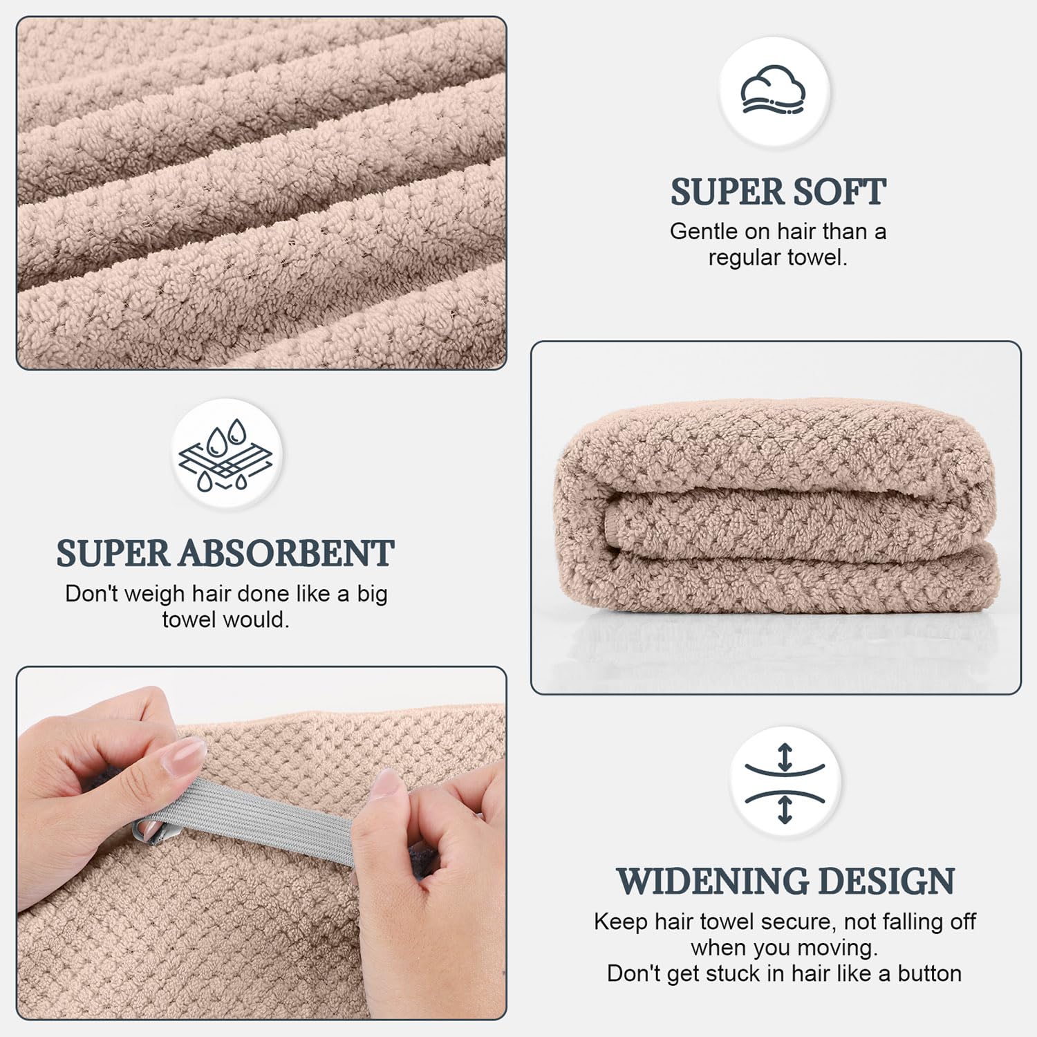 - Dries Hair Quickly: Hair towel is made of super absorbant microfiber fabric, fast absorbing for quick hair dry. Microfiber hair towel absorbs a lot of the water from hair which cuts the drying process in half. This makes hair routine go faster.