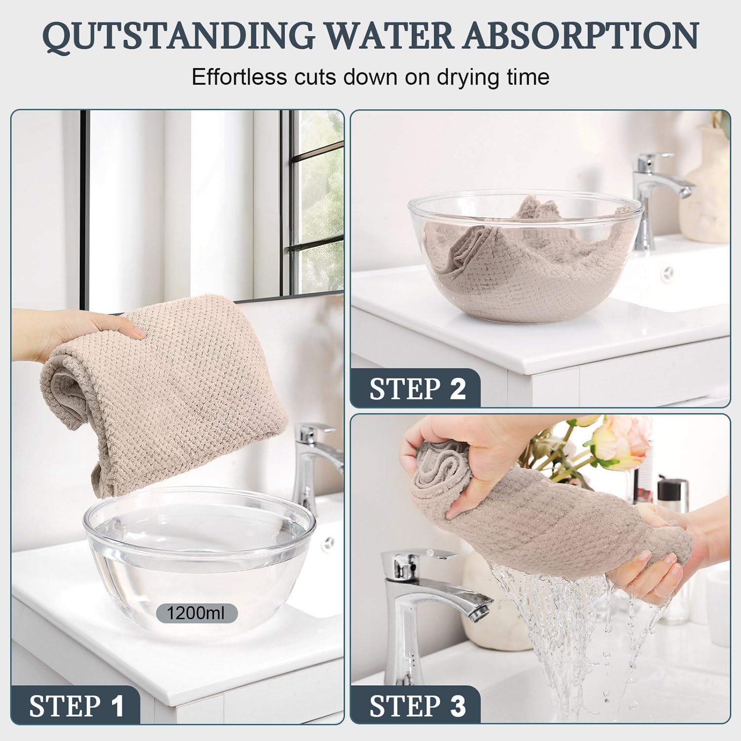 - Dries Hair Quickly: Hair towel is made of super absorbant microfiber fabric, fast absorbing for quick hair dry. Microfiber hair towel absorbs a lot of the water from hair which cuts the drying process in half. This makes hair routine go faster.
