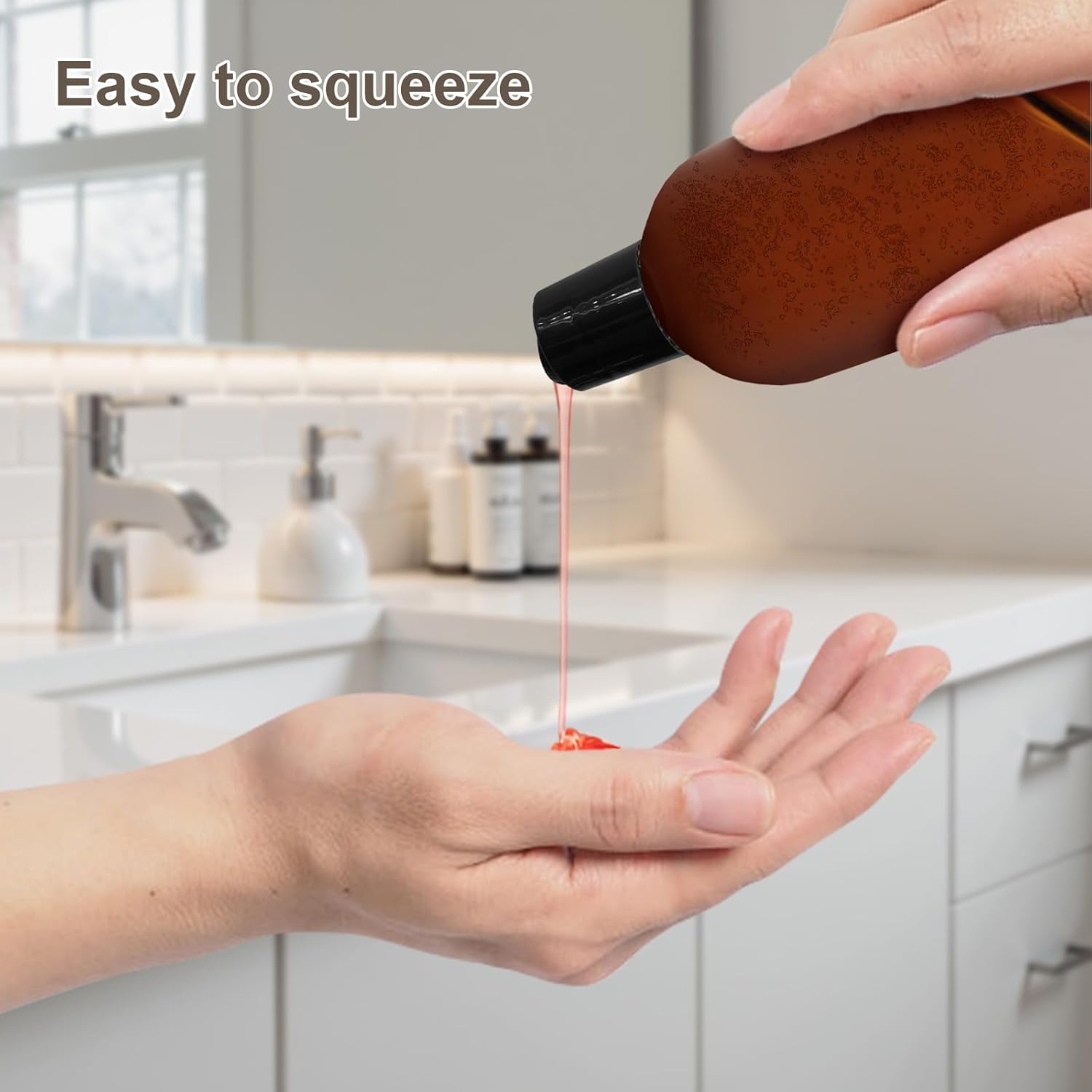 2 Pack 8 oz Amber Plastic Squeeze Bottles with Black Disc Caps Refillable Empty Travel Containers Bottles for Shampoo Conditioner Toiletries Lotions Oils BPA Free