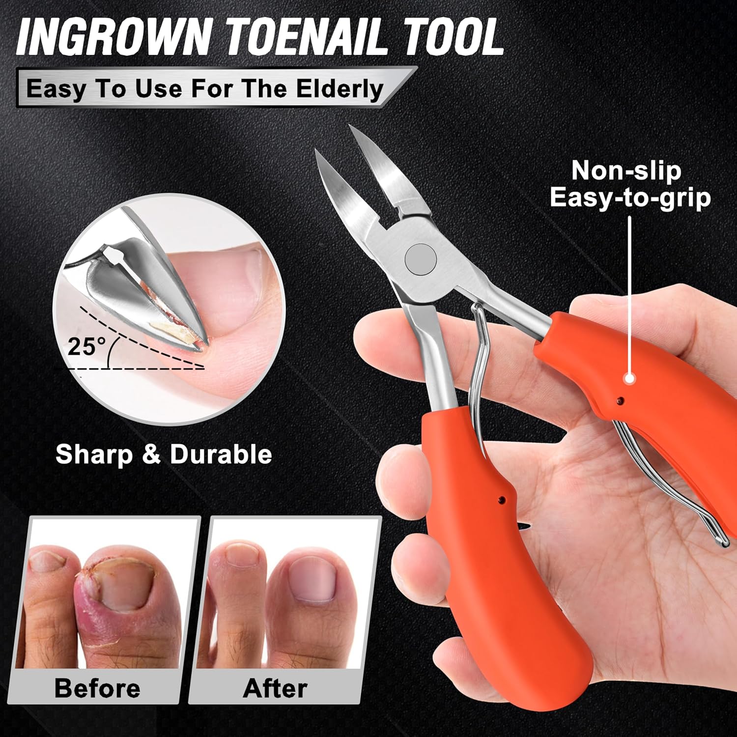 - 【Perfect Pedicure Kit】: Are you plagued by pain from ingrown and thick nails? This toenail clippers for seniors can help seniors easily trim ingrown and thick nails, No more costly visits to a podiatrist!